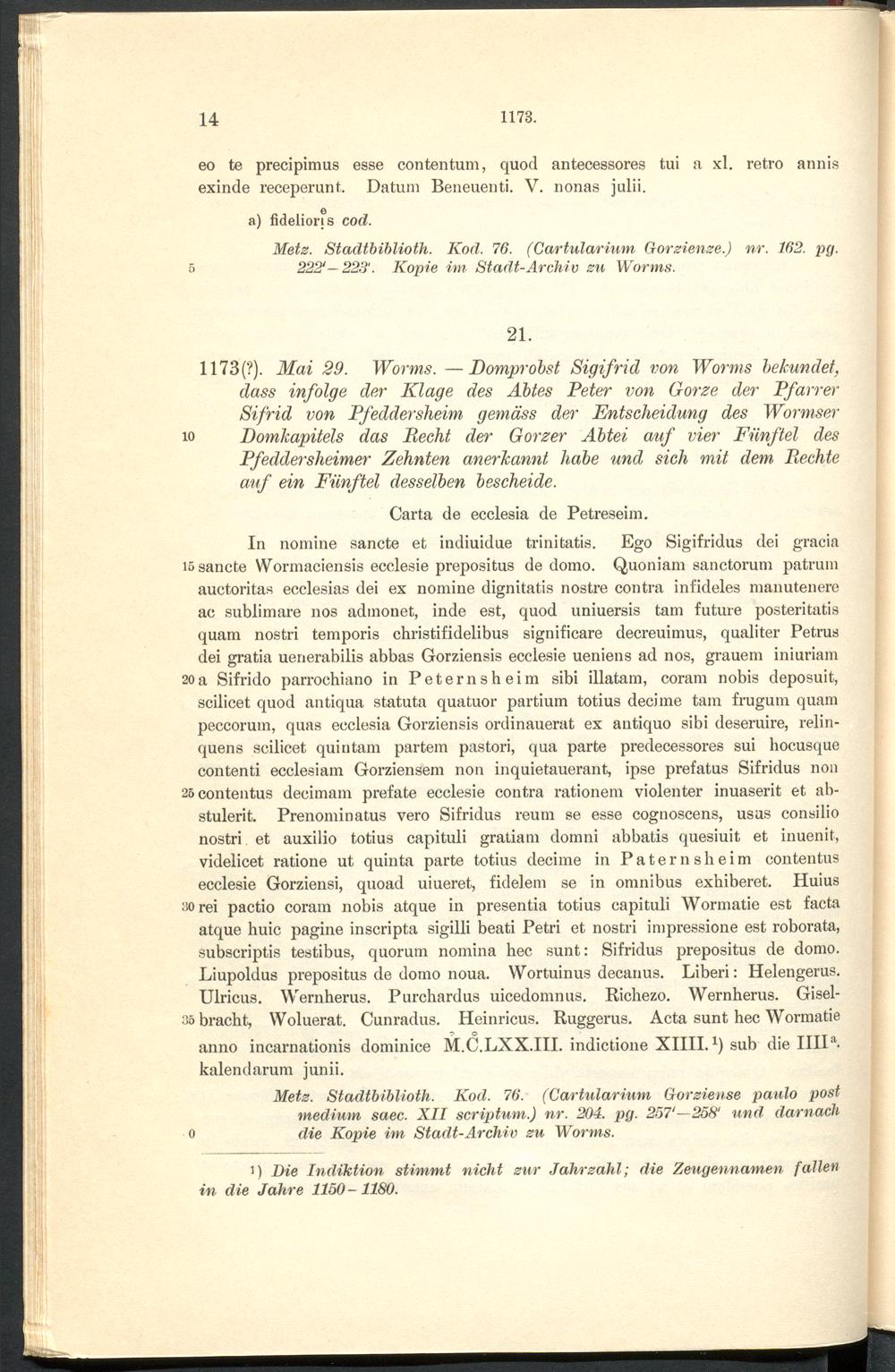Urkundenbuch der früheren freien Reichsstadt Pfeddersheim / ... hrsg. durch Daniel Bonin