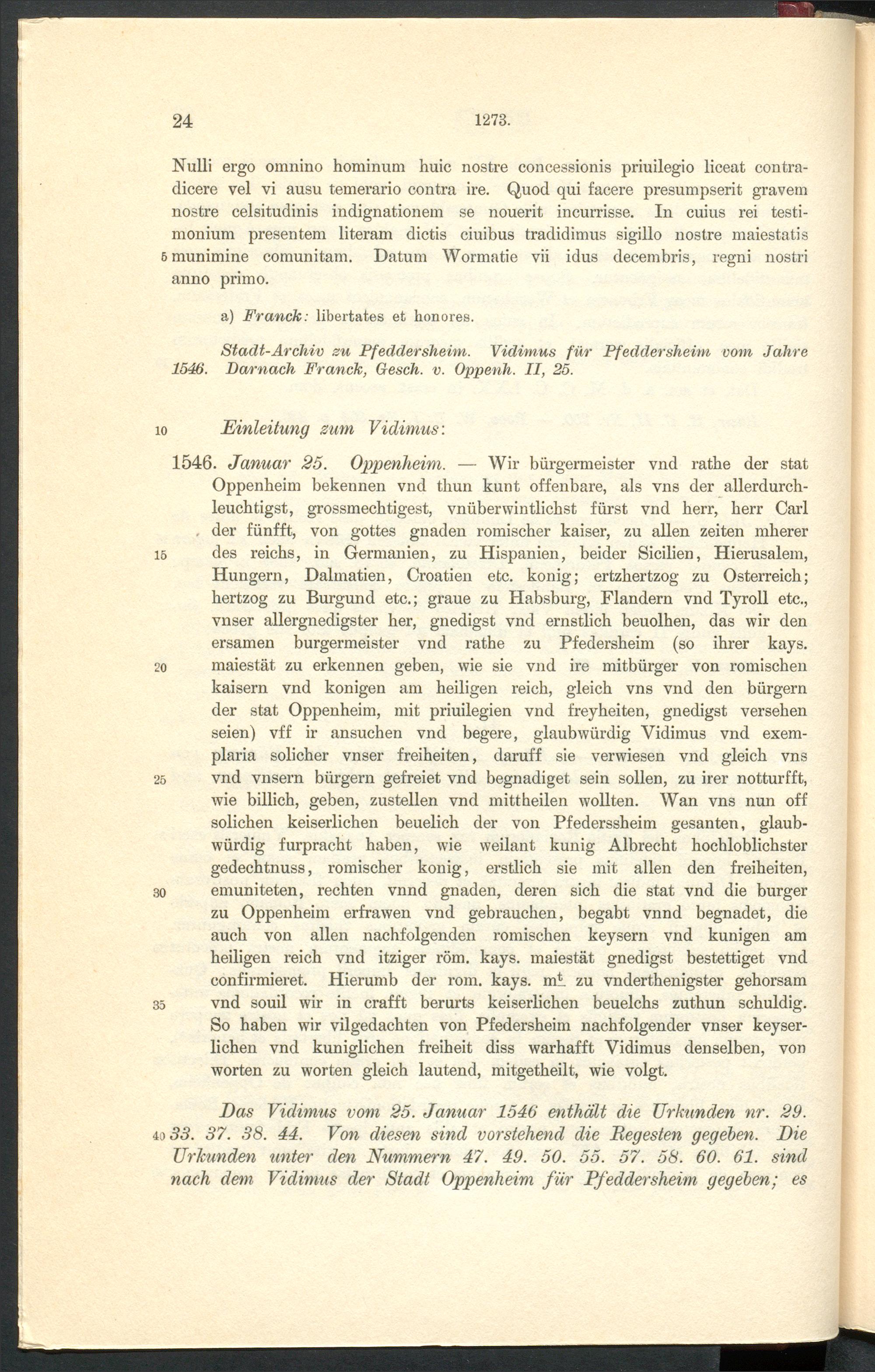 Urkundenbuch der früheren freien Reichsstadt Pfeddersheim