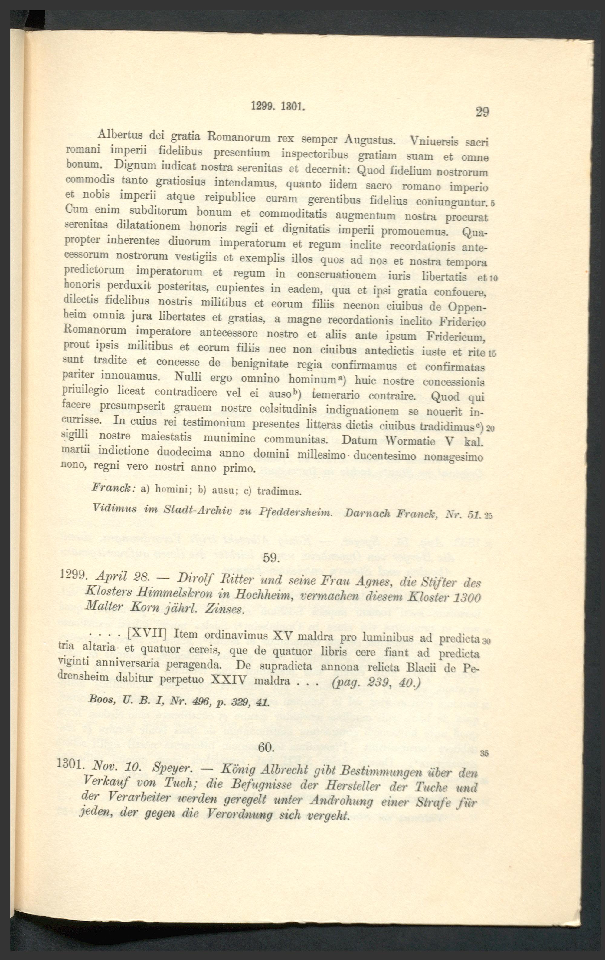 Urkundenbuch der früheren freien Reichsstadt Pfeddersheim