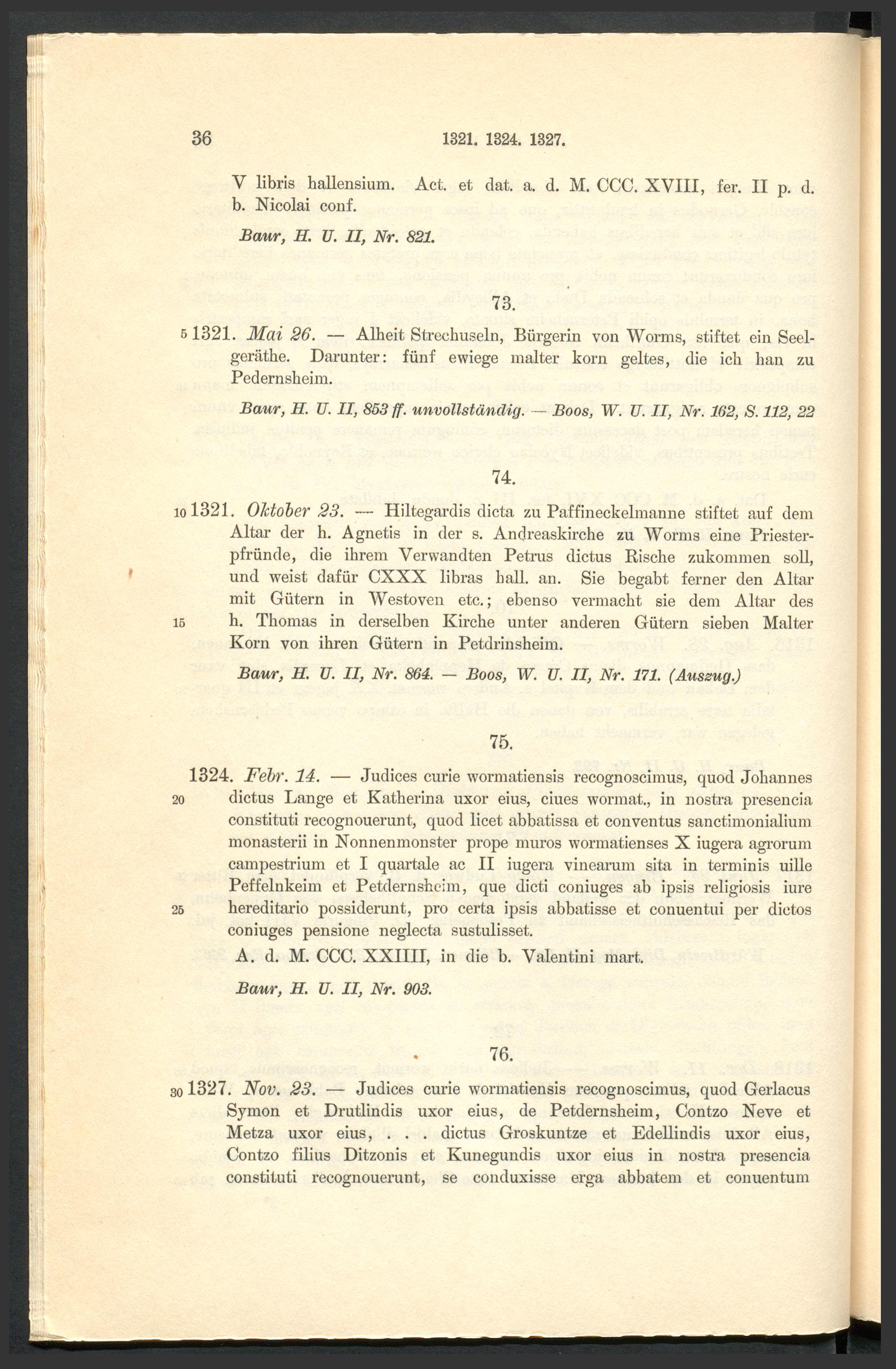 Urkundenbuch der früheren freien Reichsstadt Pfeddersheim