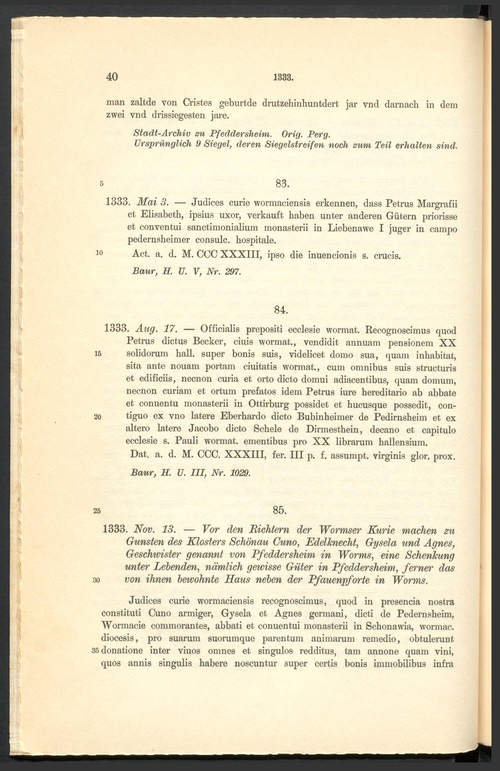 Urkundenbuch der früheren freien Reichsstadt Pfeddersheim / ... hrsg. durch Daniel Bonin