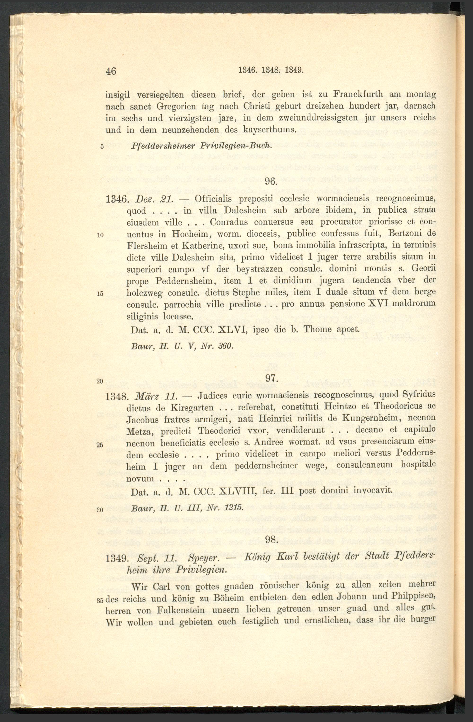 Urkundenbuch der früheren freien Reichsstadt Pfeddersheim