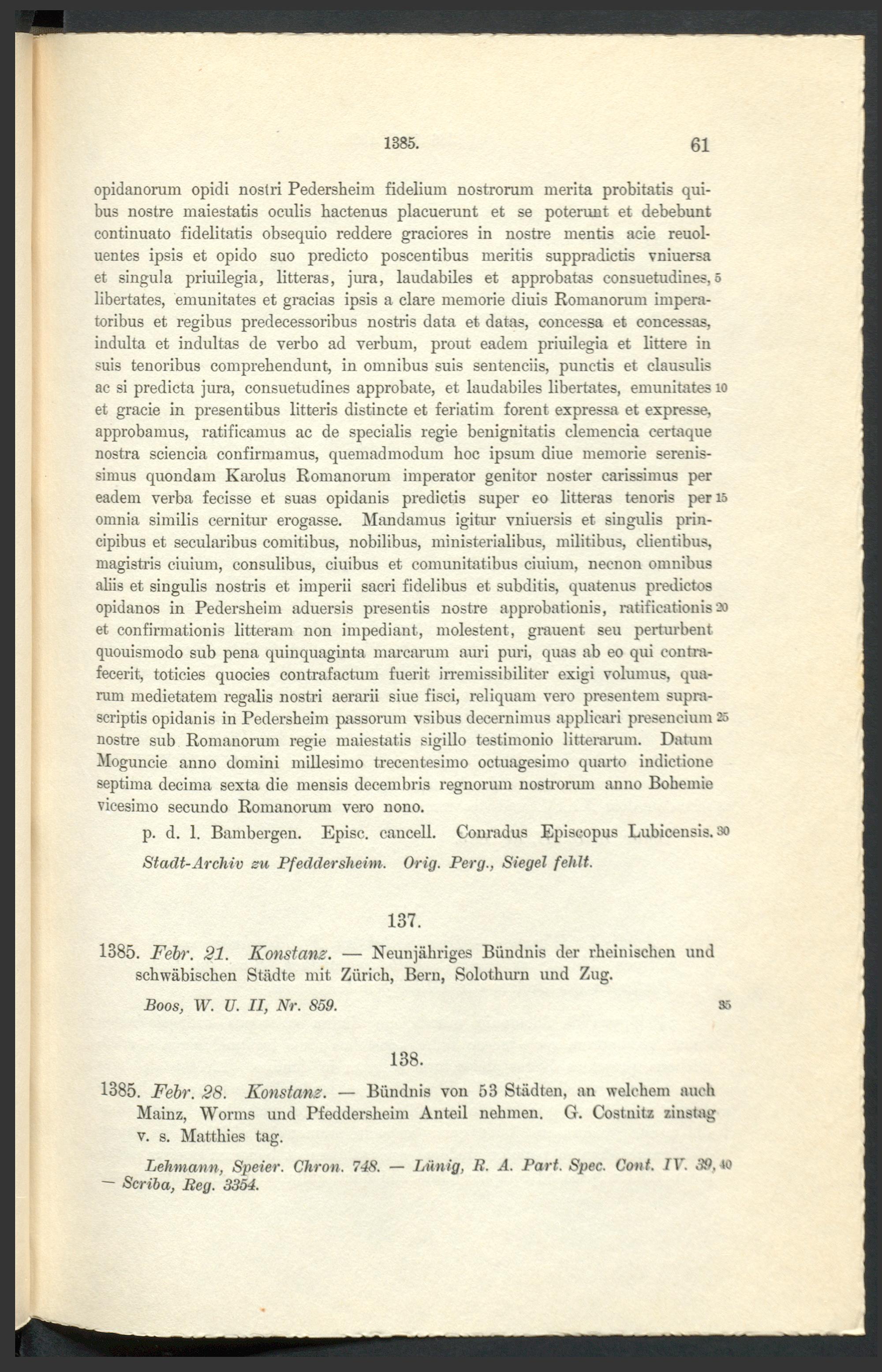 Urkundenbuch der früheren freien Reichsstadt Pfeddersheim