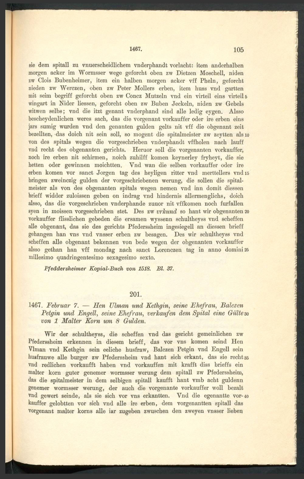 Urkundenbuch der früheren freien Reichsstadt Pfeddersheim / ... hrsg. durch Daniel Bonin