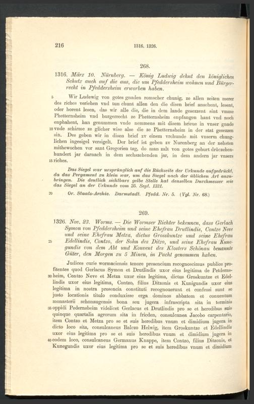 Urkundenbuch der früheren freien Reichsstadt Pfeddersheim