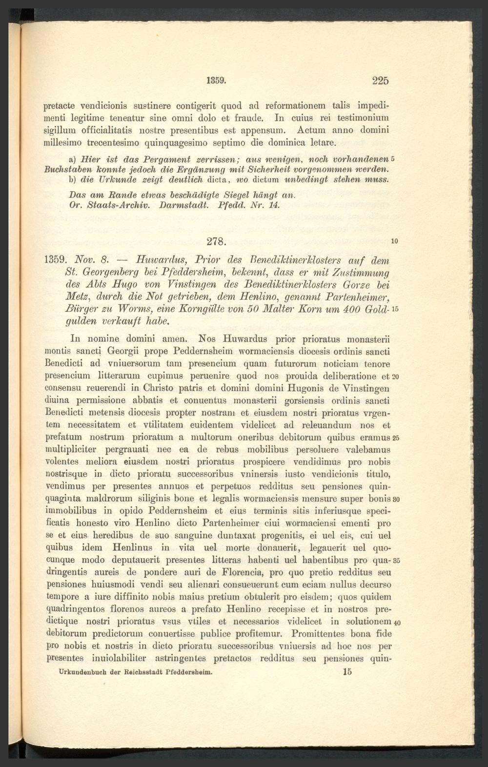 Urkundenbuch der früheren freien Reichsstadt Pfeddersheim / ... hrsg. durch Daniel Bonin