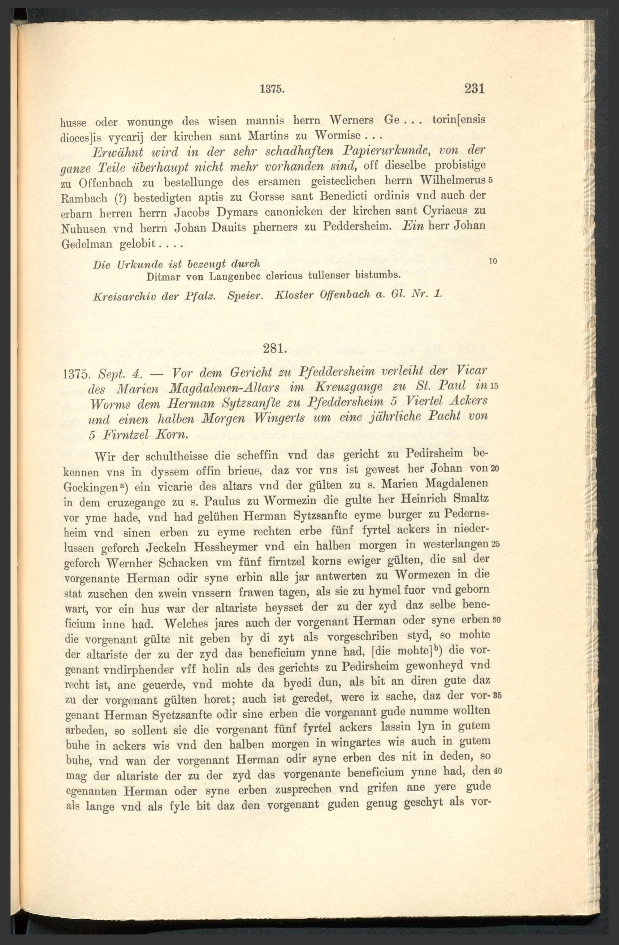 Urkundenbuch der früheren freien Reichsstadt Pfeddersheim