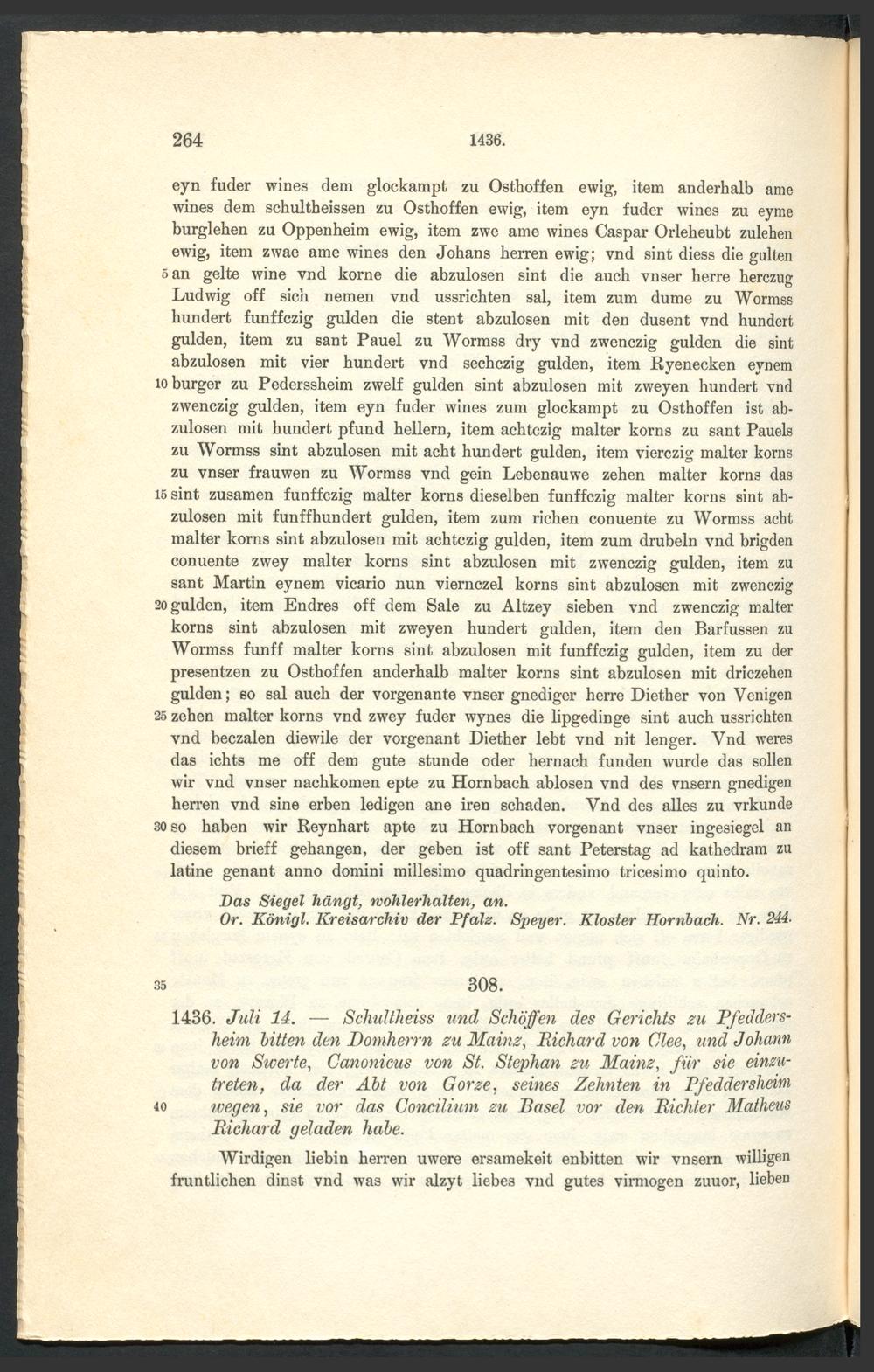 Urkundenbuch der früheren freien Reichsstadt Pfeddersheim / ... hrsg. durch Daniel Bonin