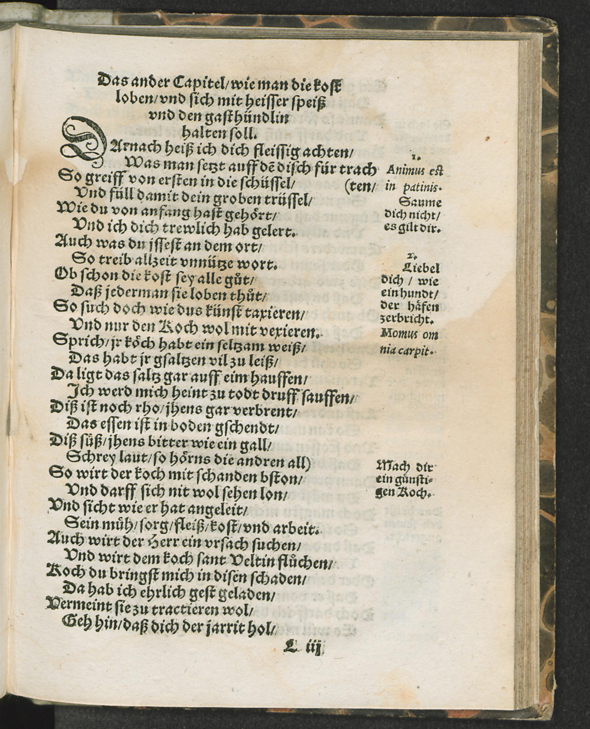 Das ander Capitel / wie man die kost loben / vnd sich mit heisser speiß vnd den gasthündlin halten soll.