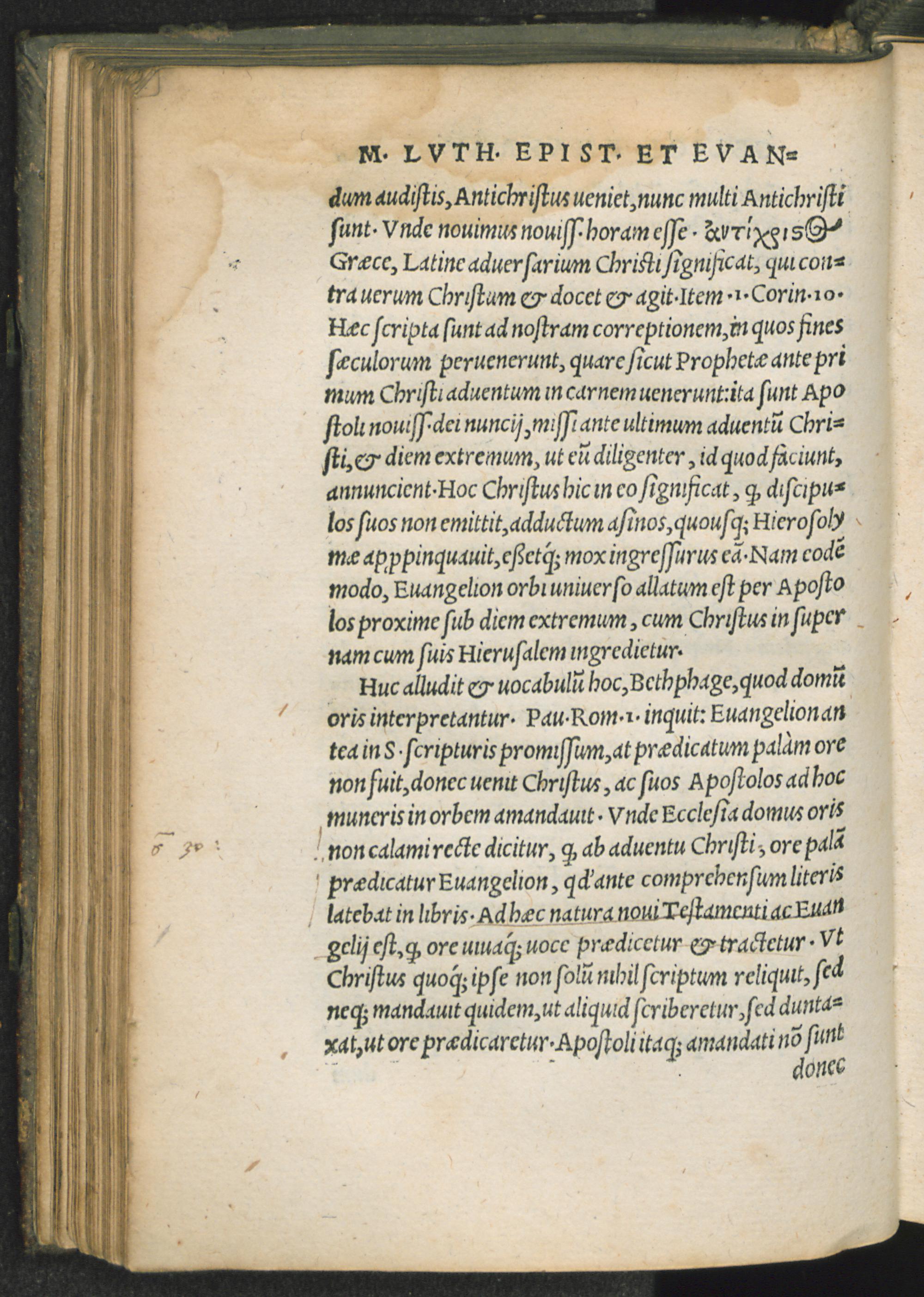 Primvs Tomvs Enarrationum in Epistolas et Euangelia, ut uulgo uocant, lectiones illas, quae in Mißa festis diebus ex historijs Euangelicis et scriptis Apostolicis solent recitari. Authore Martino Luthero. Opus optimae frugis, latinis hactenus incognitum. / [übers.v. Martin Bucer]