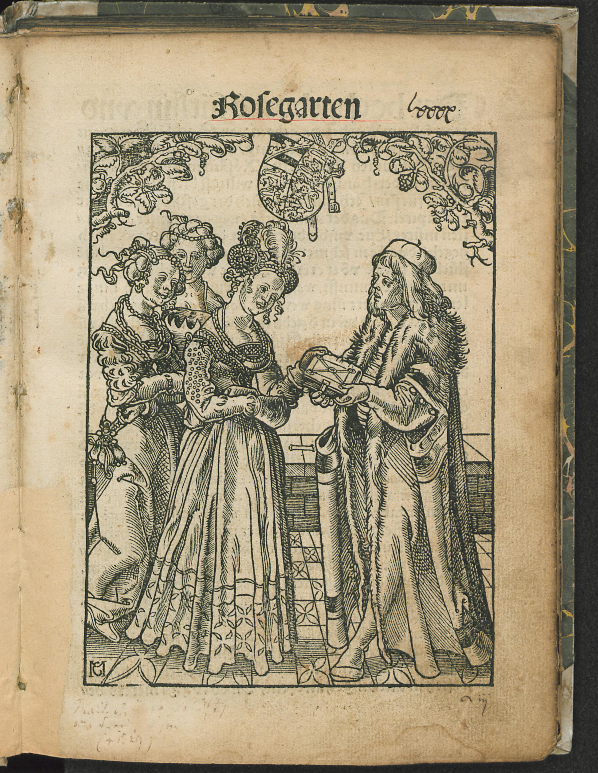 (Titelbild der Augsburger Ausgabe vom J. 1528 samt handschriftlicher Notizen)