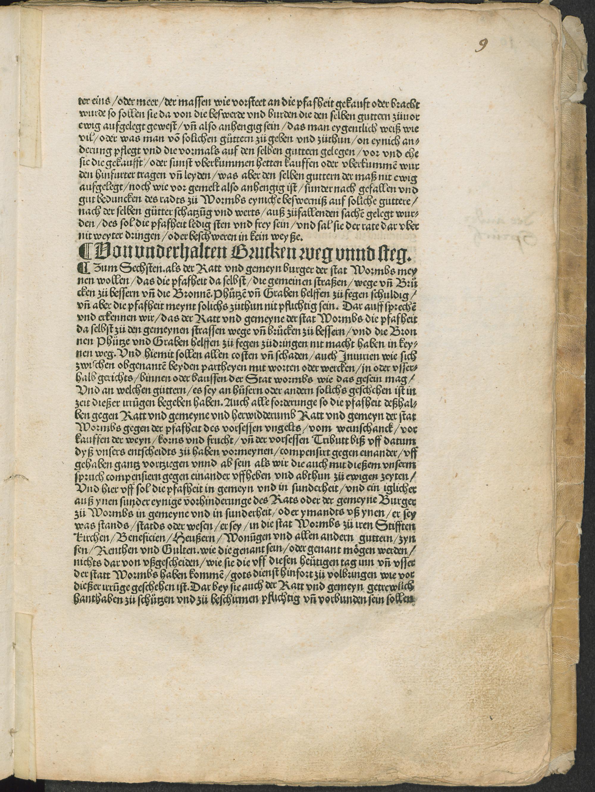 Entscheidt vnd vertrege zwischenn der pfaffheidt vnd gemeyner Statt wormbs des weynschenckens vnd anderer stuck halber [et]c.