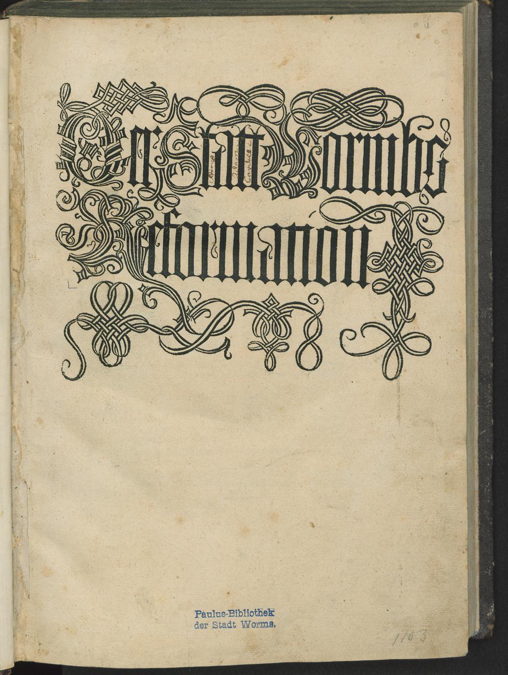 Der Statt Wormbs Reformation