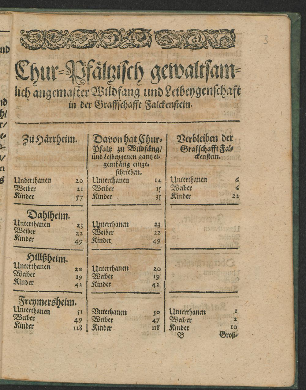 Chur-Pfaeltzisch gewaltsamlich angemaster Wildfang und Leibeygenschaft in der Graffschafft Falckenstein