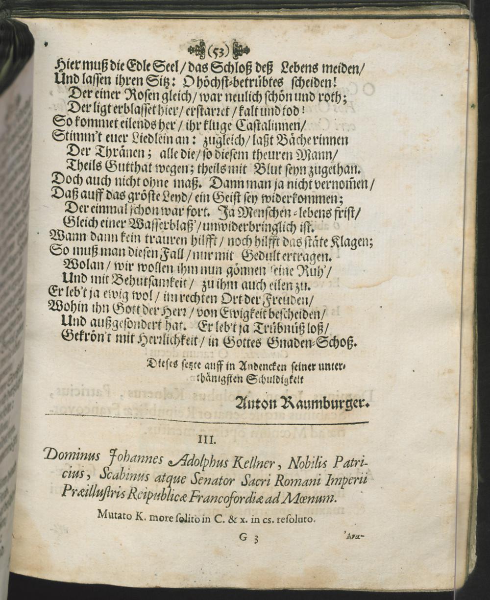 Glaubiger Kinder Gottes Seeligkeit/ Auß Psal. 84. v. 13. : Bey Volckreicher Leich-begängnus Deß weiland Wol-Edlen, Gestrengen, Fürsichtigen und Hochweisen Herrn Joh. Adolph Kellnern, Gewesenen Schöffen und deß Raths in deß H. Röm. Reichs Statt Franckfurt am Mayn, Christseeligen angedenckens. Als, nachdem derselbe Montags den 7. Jenner 1667. ... entschlaffen ... dessen verblichener leichnam ... den 10. Jenner/ mit Christlichen und gewohnlichen cerimonien, in der Kirchen zu S. Catharina zu seinen Voreltern beygesetzt und eingesencket wurde / Der versamleten gemeinde Gottes vorgetragen ... von Philipp Jacob Spenern, der Heil. Schrifft Doct. und deß Evangel. Predigamts in Franckf. Seniorn.