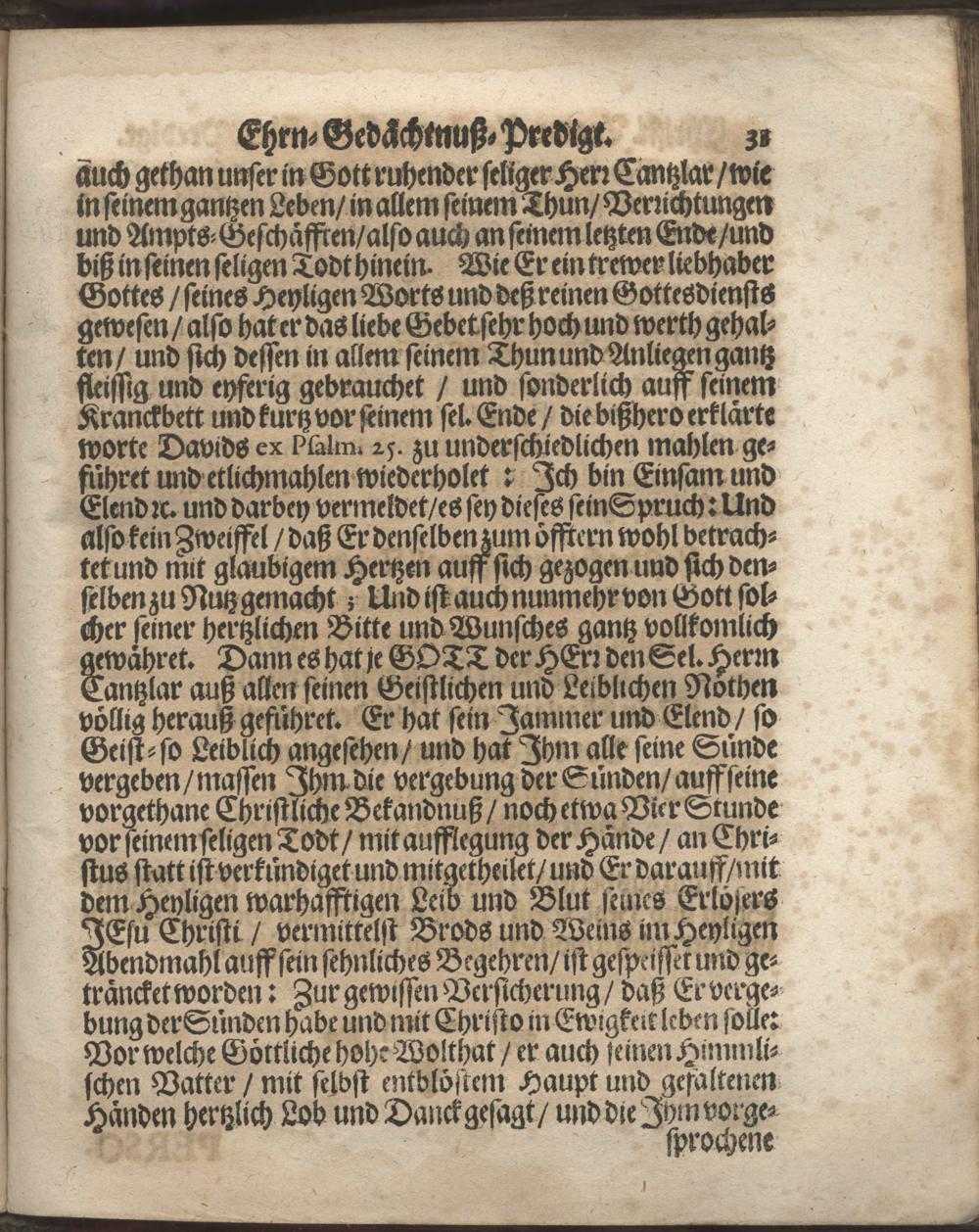 Christliche Trawr- Trost- und Ehrn-Gedächtnuß-Predigt, Zu Darmbstatt in der Pfarr-Kirche den 21. Tag Augstmonats, im Jahr 1666. Als der HochEdle, Gestrenge und Veste Herr Philipp Ludwig Fabricius, JConsultus, Comes Palatinus Caesareus, Fürstlicher Hessen-Darmbstatischer gewesener Geheimder Rath und Cantzlar, daselbst Christlich zur Erden bestattet worden / In Ansehlich- und Volckreicher Versamlung gehalten Von Balthasar Mentzern D. Ober-Hoffpredigern und Superintendenten