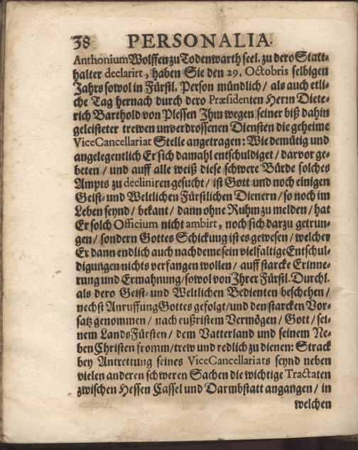 Christliche Trawr- Trost- und Ehrn-Gedächtnuß-Predigt, Zu Darmbstatt in der Pfarr-Kirche den 21. Tag Augstmonats, im Jahr 1666. Als der HochEdle, Gestrenge und Veste Herr Philipp Ludwig Fabricius, JConsultus, Comes Palatinus Caesareus, Fürstlicher Hessen-Darmbstatischer gewesener Geheimder Rath und Cantzlar, daselbst Christlich zur Erden bestattet worden / In Ansehlich- und Volckreicher Versamlung gehalten Von Balthasar Mentzern D. Ober-Hoffpredigern und Superintendenten