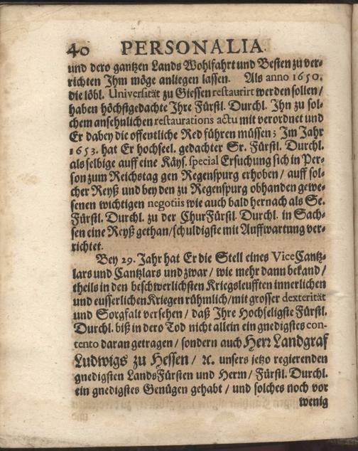 Christliche Trawr- Trost- und Ehrn-Gedächtnuß-Predigt, Zu Darmbstatt in der Pfarr-Kirche den 21. Tag Augstmonats, im Jahr 1666. Als der HochEdle, Gestrenge und Veste Herr Philipp Ludwig Fabricius, JConsultus, Comes Palatinus Caesareus, Fürstlicher Hessen-Darmbstatischer gewesener Geheimder Rath und Cantzlar, daselbst Christlich zur Erden bestattet worden / In Ansehlich- und Volckreicher Versamlung gehalten Von Balthasar Mentzern D. Ober-Hoffpredigern und Superintendenten
