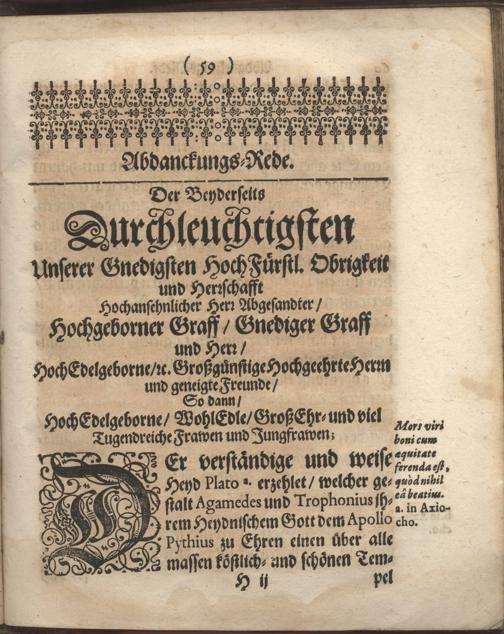Christliche Trawr- Trost- und Ehrn-Gedächtnuß-Predigt, Zu Darmbstatt in der Pfarr-Kirche den 21. Tag Augstmonats, im Jahr 1666. Als der HochEdle, Gestrenge und Veste Herr Philipp Ludwig Fabricius, JConsultus, Comes Palatinus Caesareus, Fürstlicher Hessen-Darmbstatischer gewesener Geheimder Rath und Cantzlar, daselbst Christlich zur Erden bestattet worden / In Ansehlich- und Volckreicher Versamlung gehalten Von Balthasar Mentzern D. Ober-Hoffpredigern und Superintendenten