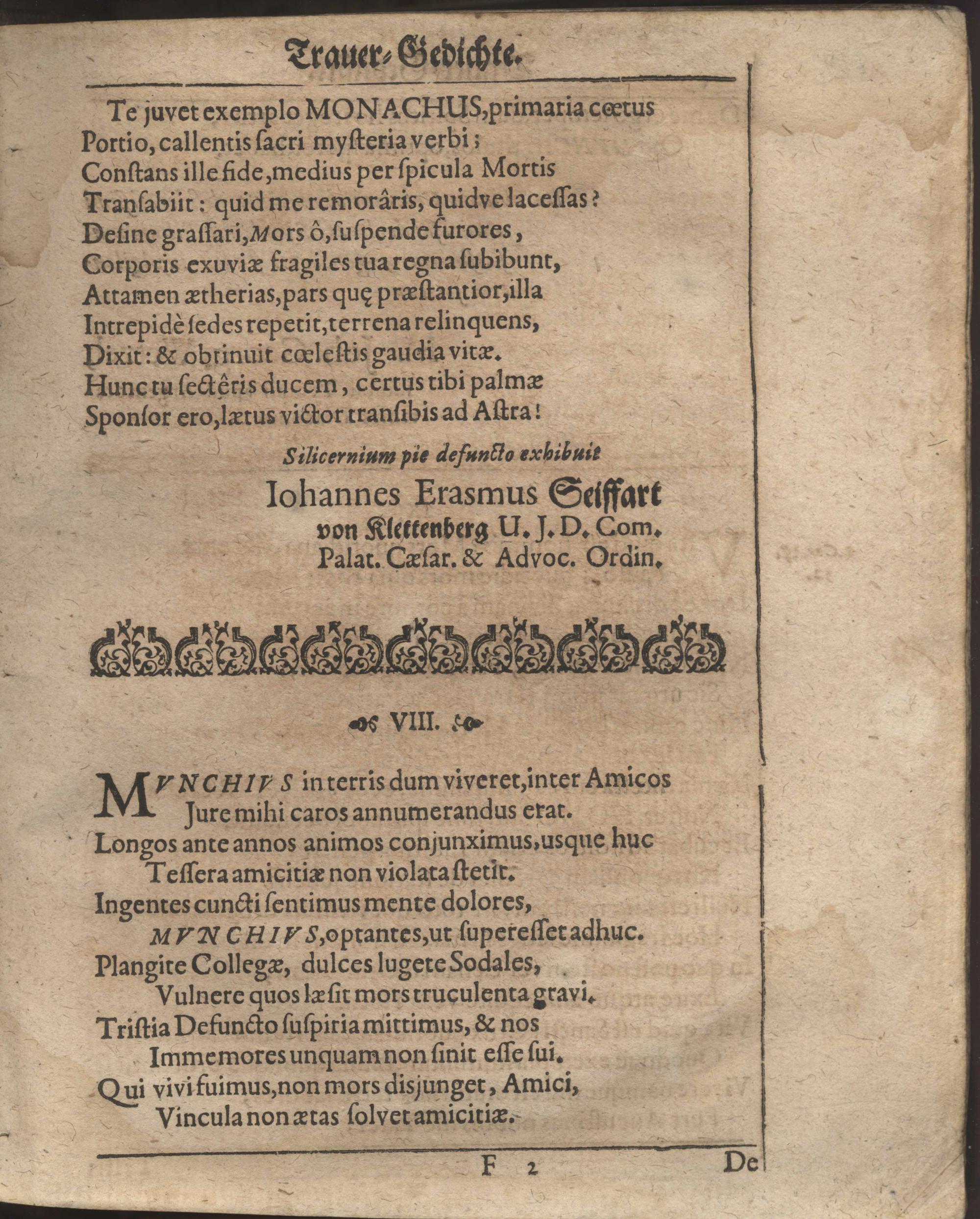 Aller Menschen Nichtigkeit Auß den Worten Davids Psa. XXXIX, 12. Ach wie gar nichts sind doch alle Menschen. Sela. Bey Ansehnlicher und Volckreicher Leichbegängnüß Deß weyland Wohl-Ehrwürdigen, Andächtigen und Wohlgelährten Herrn Gerhardi Münchs, Treugewesenen Evangelischen Predigers, dieser des H. Reichs-Stadt Franckfurth am Mäyn Christseligen Andenckens, Welcher am 11. Martii dieses lauffenden 1671. Jahrs diese Nichtigkeit verlassen, und am folgenden 14. ejusdem auff dem Gottes-Acker zu S. Peter mit Christgewöhnlichen Ceremonien beerdiget worden. / In der Kirchen zu St. Peter der daselbst versamlet gewesenen Christlichen Gemeinde vor Augen gestellt Von Johanne Emmeln, Evangel. Predigern allhier.