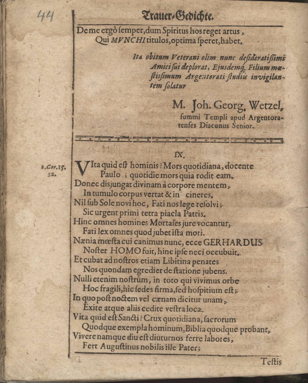 Aller Menschen Nichtigkeit Auß den Worten Davids Psa. XXXIX, 12. Ach wie gar nichts sind doch alle Menschen. Sela. Bey Ansehnlicher und Volckreicher Leichbegängnüß Deß weyland Wohl-Ehrwürdigen, Andächtigen und Wohlgelährten Herrn Gerhardi Münchs, Treugewesenen Evangelischen Predigers, dieser des H. Reichs-Stadt Franckfurth am Mäyn Christseligen Andenckens, Welcher am 11. Martii dieses lauffenden 1671. Jahrs diese Nichtigkeit verlassen, und am folgenden 14. ejusdem auff dem Gottes-Acker zu S. Peter mit Christgewöhnlichen Ceremonien beerdiget worden. / In der Kirchen zu St. Peter der daselbst versamlet gewesenen Christlichen Gemeinde vor Augen gestellt Von Johanne Emmeln, Evangel. Predigern allhier.