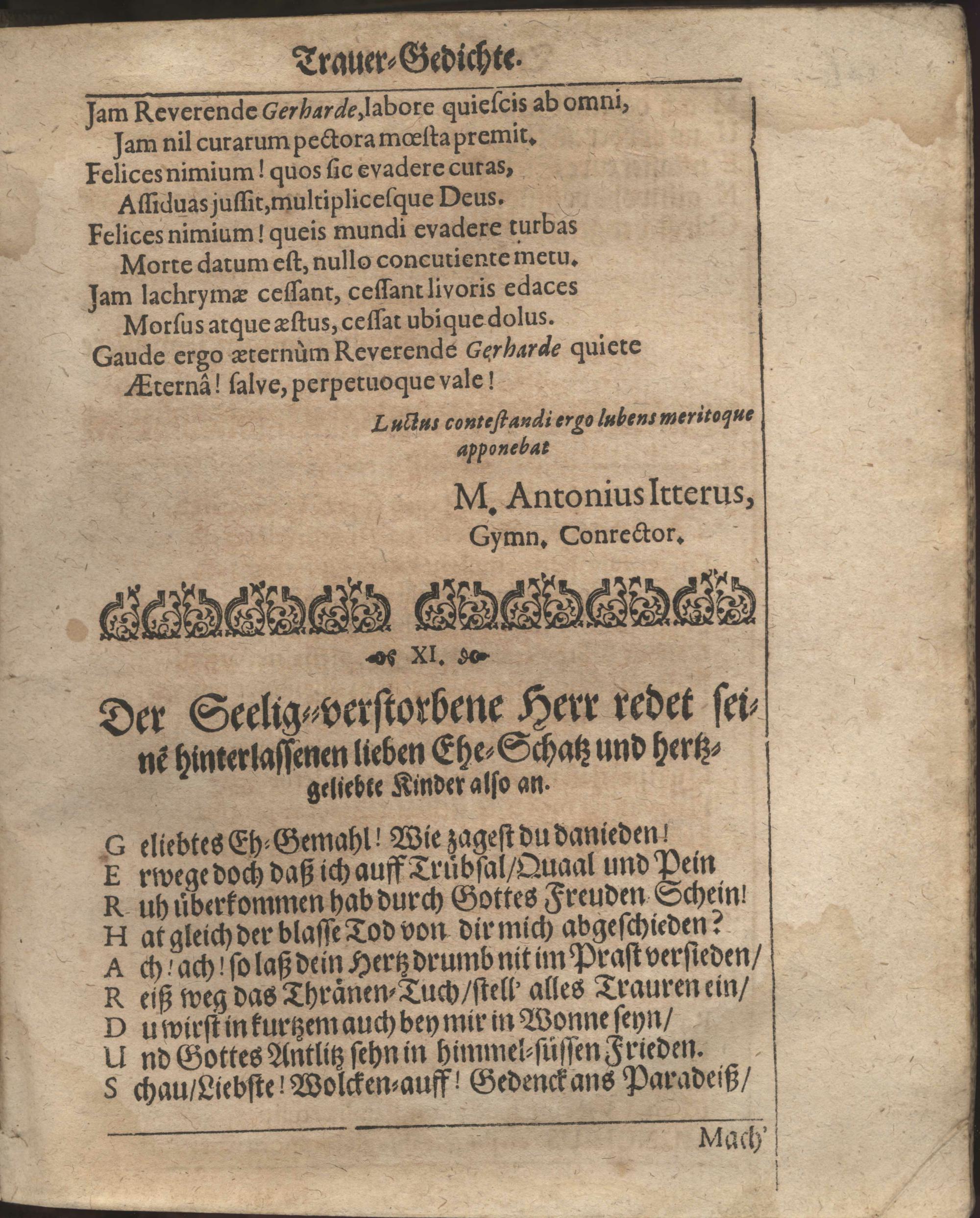Aller Menschen Nichtigkeit Auß den Worten Davids Psa. XXXIX, 12. Ach wie gar nichts sind doch alle Menschen. Sela. Bey Ansehnlicher und Volckreicher Leichbegängnüß Deß weyland Wohl-Ehrwürdigen, Andächtigen und Wohlgelährten Herrn Gerhardi Münchs, Treugewesenen Evangelischen Predigers, dieser des H. Reichs-Stadt Franckfurth am Mäyn Christseligen Andenckens, Welcher am 11. Martii dieses lauffenden 1671. Jahrs diese Nichtigkeit verlassen, und am folgenden 14. ejusdem auff dem Gottes-Acker zu S. Peter mit Christgewöhnlichen Ceremonien beerdiget worden. / In der Kirchen zu St. Peter der daselbst versamlet gewesenen Christlichen Gemeinde vor Augen gestellt Von Johanne Emmeln, Evangel. Predigern allhier.