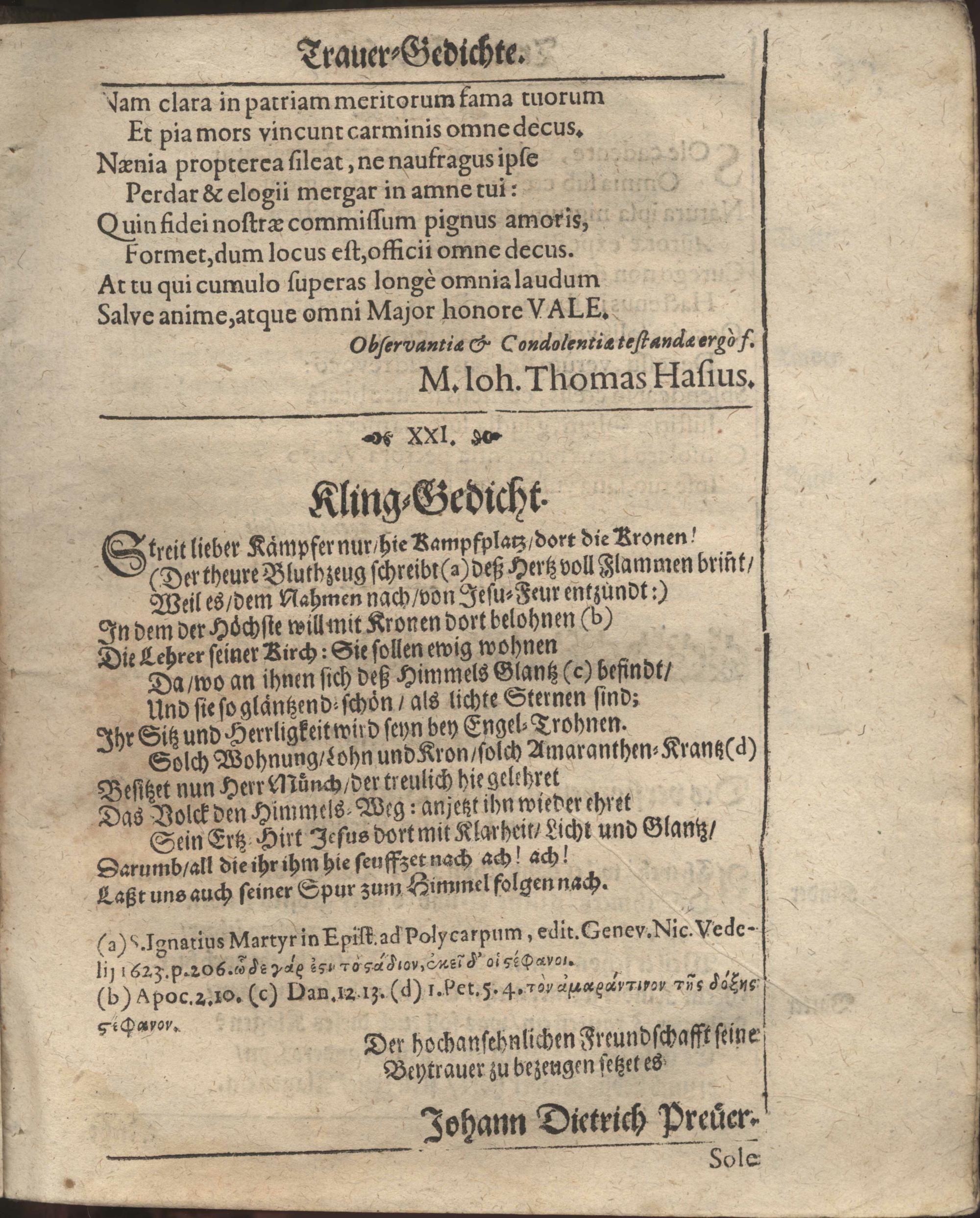 Aller Menschen Nichtigkeit Auß den Worten Davids Psa. XXXIX, 12. Ach wie gar nichts sind doch alle Menschen. Sela. Bey Ansehnlicher und Volckreicher Leichbegängnüß Deß weyland Wohl-Ehrwürdigen, Andächtigen und Wohlgelährten Herrn Gerhardi Münchs, Treugewesenen Evangelischen Predigers, dieser des H. Reichs-Stadt Franckfurth am Mäyn Christseligen Andenckens, Welcher am 11. Martii dieses lauffenden 1671. Jahrs diese Nichtigkeit verlassen, und am folgenden 14. ejusdem auff dem Gottes-Acker zu S. Peter mit Christgewöhnlichen Ceremonien beerdiget worden. / In der Kirchen zu St. Peter der daselbst versamlet gewesenen Christlichen Gemeinde vor Augen gestellt Von Johanne Emmeln, Evangel. Predigern allhier.