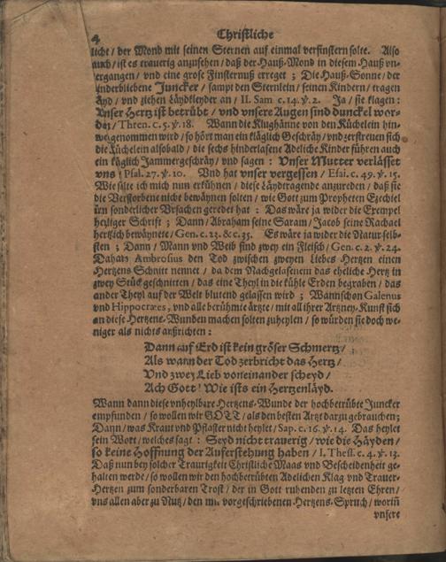 Köstlicher Hertzens-Trost, Kleynod und Brust-Bild. Auß den mehr als güldenen Worten Asaphs, Psal. 73 v. 25. 26. Bey der läyder allzufürhzeitigen, hochbekläglichen, vnd vnvermutlichen, doch aber seeligen, vnd hochansehnlichen Leichbestättigung Der Weyland Hoch-Edelgebornen, Gros-Ehr- vnd Tugendreichen, Gottsförchtigen vnd Gutthätigen Frauen, Fr: Maria Margretha Deuffeln von Pürckensee, geborne von den Bürgden: Deß ... Herrn Albrecht Christoph Deuffels von Pürckensee, jetziger Zeit Hochgräflich Hanauischen Amptmanns zu Ortenberg, Hertz- und vielgeliebten Eheliebsten; Welche im Jahr 1666. den 20. Märtz ... diese Welt gesegnet, und ihr verblichener Leichnam am 26. ejusdem ... zu Ortenberg in der Stadtkirchen zur Erden bestattet worden / ... in Druck verfertiget, Durch Johannem-Wilhelmum Wagnerum, Solmeio-Laubacensem, dieser Zeit Pfarrern zu Bleichebach und Selters, im Ampt Ortenberg