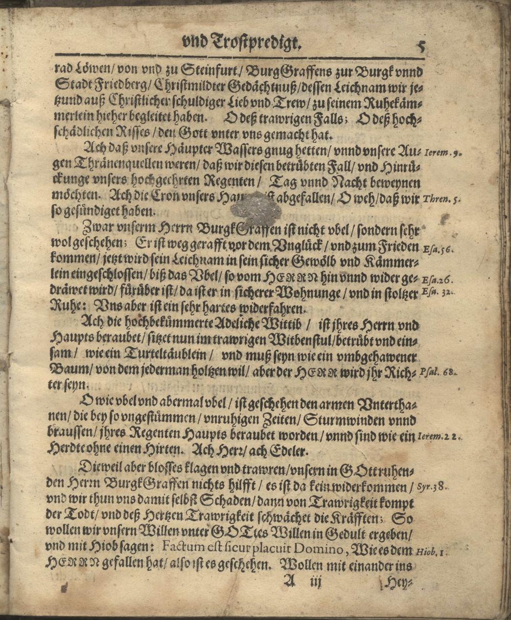 Vale Pavlinvm: Das ist: Gottselige Betrachtung und Erklärung der Leichpredigt, so S. Paulus, der Heyden Doctor, ihme selbst zu Rom im Gefängnüß gehalten, und seinem Jünger Timotheo ... schrifftlich ubersendet ... Bey hochansehnlicher Volckreicher Begräbnuß, Weyland deß Gestrengen, Wol-Edlen, vnd Vhesten Herrn Conrad Löwen, Von und zu Steinfurt, BurgkGraffens zur Reichs Burgk und Stadt Friedberg, Christseeliger Gedächtnuß. Welcher Sonnabends, den 17. Tag Mart. dieses 1632. Jahrs ... zu Steinfurt ... entschlaffen, und folgends daselbst den 5. Tag Aprilis ... zur Erden bestattet worden. / Gehalten ... Von Cratone Eobaldo, Pfarrern und Dienern am Wort Gottes zur Burgk Friedberg