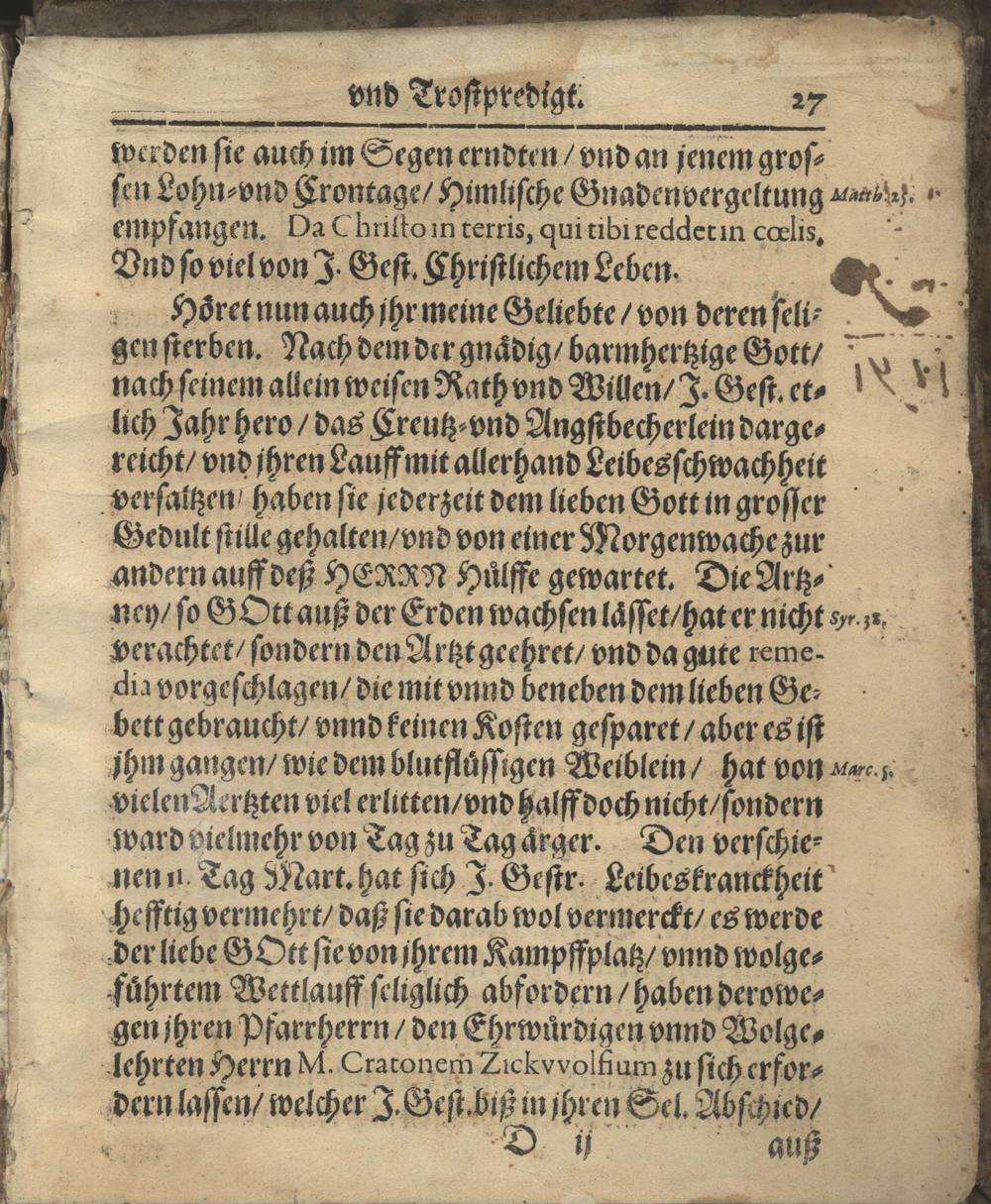 Vale Pavlinvm: Das ist: Gottselige Betrachtung und Erklärung der Leichpredigt, so S. Paulus, der Heyden Doctor, ihme selbst zu Rom im Gefängnüß gehalten, und seinem Jünger Timotheo ... schrifftlich ubersendet ... Bey hochansehnlicher Volckreicher Begräbnuß, Weyland deß Gestrengen, Wol-Edlen, vnd Vhesten Herrn Conrad Löwen, Von und zu Steinfurt, BurgkGraffens zur Reichs Burgk und Stadt Friedberg, Christseeliger Gedächtnuß. Welcher Sonnabends, den 17. Tag Mart. dieses 1632. Jahrs ... zu Steinfurt ... entschlaffen, und folgends daselbst den 5. Tag Aprilis ... zur Erden bestattet worden. / Gehalten ... Von Cratone Eobaldo, Pfarrern und Dienern am Wort Gottes zur Burgk Friedberg