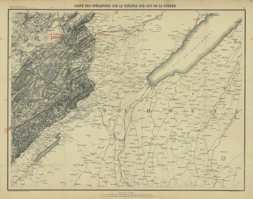 1,2,B. Histoire de la guerre jusqu'a la chute de l'empire. De la bataille de Gravelotte á la chute de L'Èmpire. [Karten]