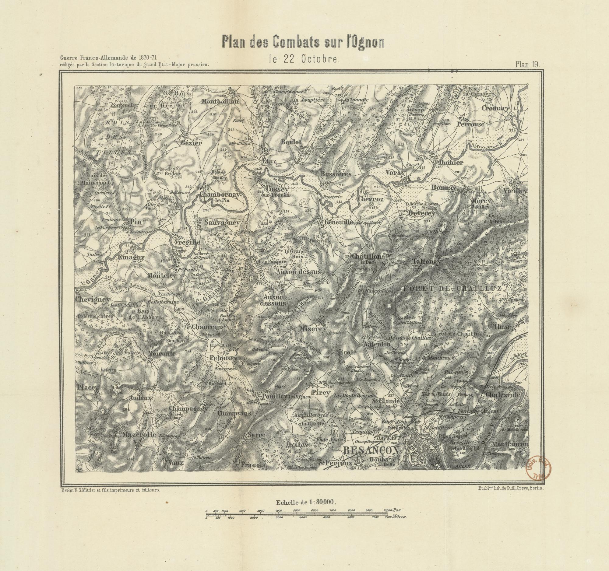 Plan des combats sur l'Ognon le 22 octobre / Etablent. lith. de Guill. Greve, Berlin.