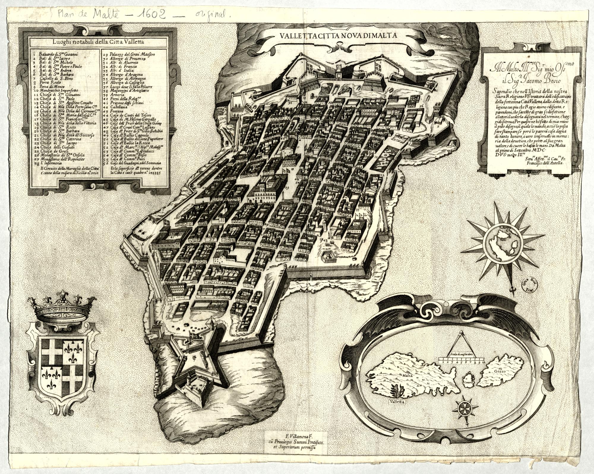 Valletta Citta Nova Di Malta : F. Villamena F. cu[m] Priuilegio Summi Pontificis. et Superiorum permissu