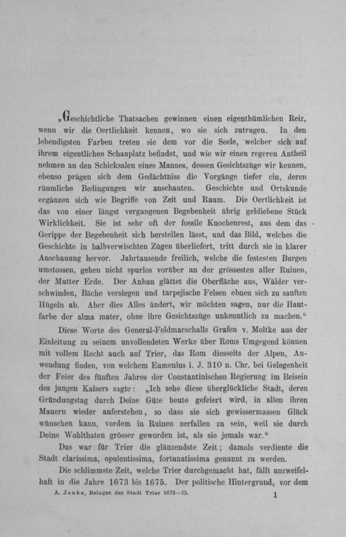Die Belagerungen der Stadt Trier in den Jahren 1673 bis 1675 und die Schlacht an der Conzer Brücke am 11. August 1675 / von A. Janke