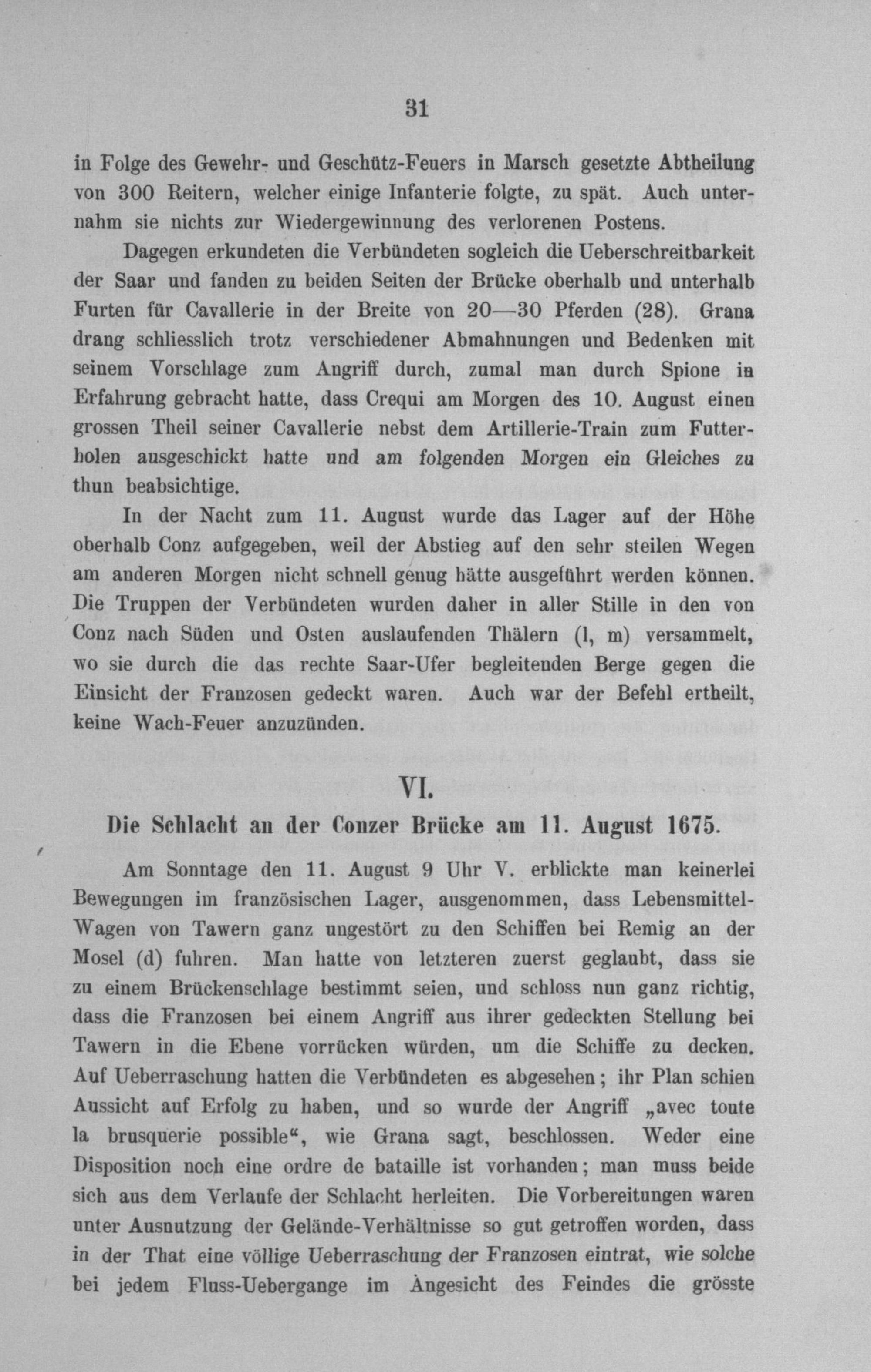 VI. Die Schlacht an der Conzer Brücke am 11. August 1675