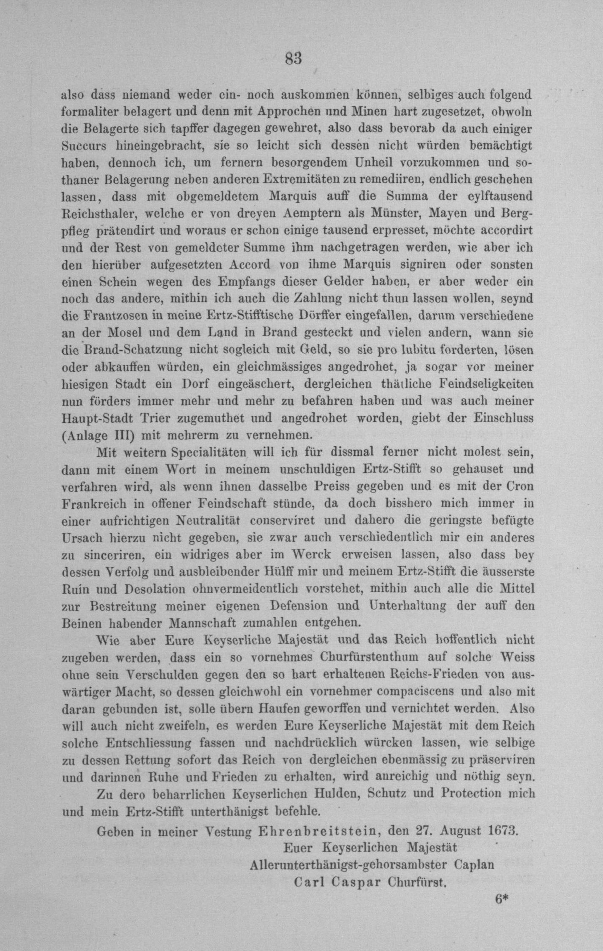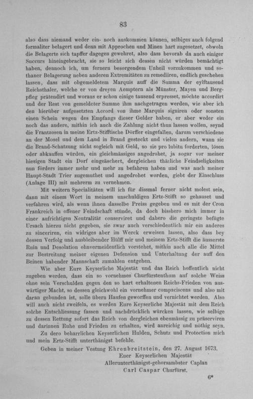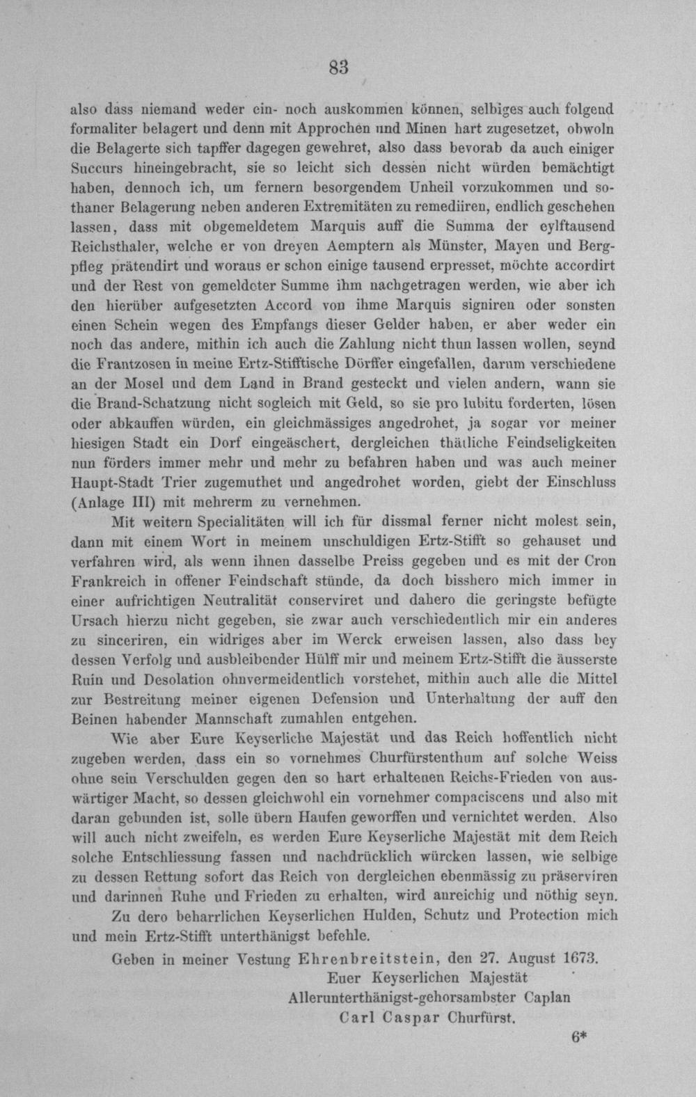 Anl. II. Schreiben des Kurfürsten von Trier, in welchem er bei Sr. M. dem Kaiser...