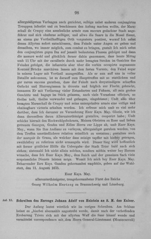 Anl. XI. Schreiben des Herzogs Johann Adolf von Holstein an S. M. den Kaiser