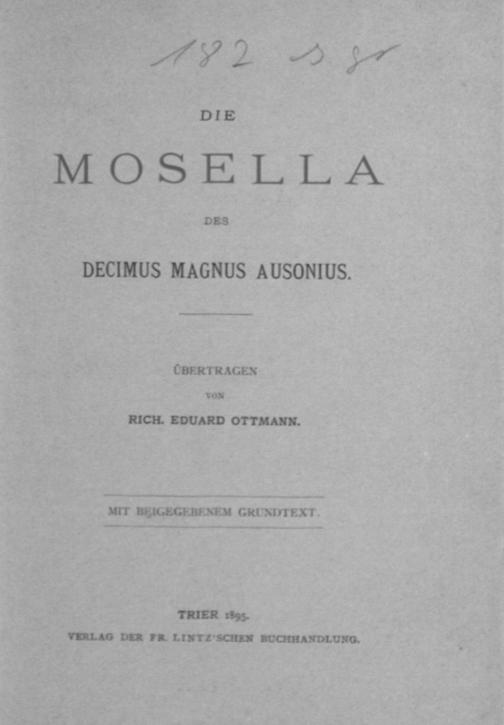 Die Mosella <<des Decimus Magnus Ausonius>> : mit beigegebenem Grundtext / übertr. von Rich. Eduard Ottmann