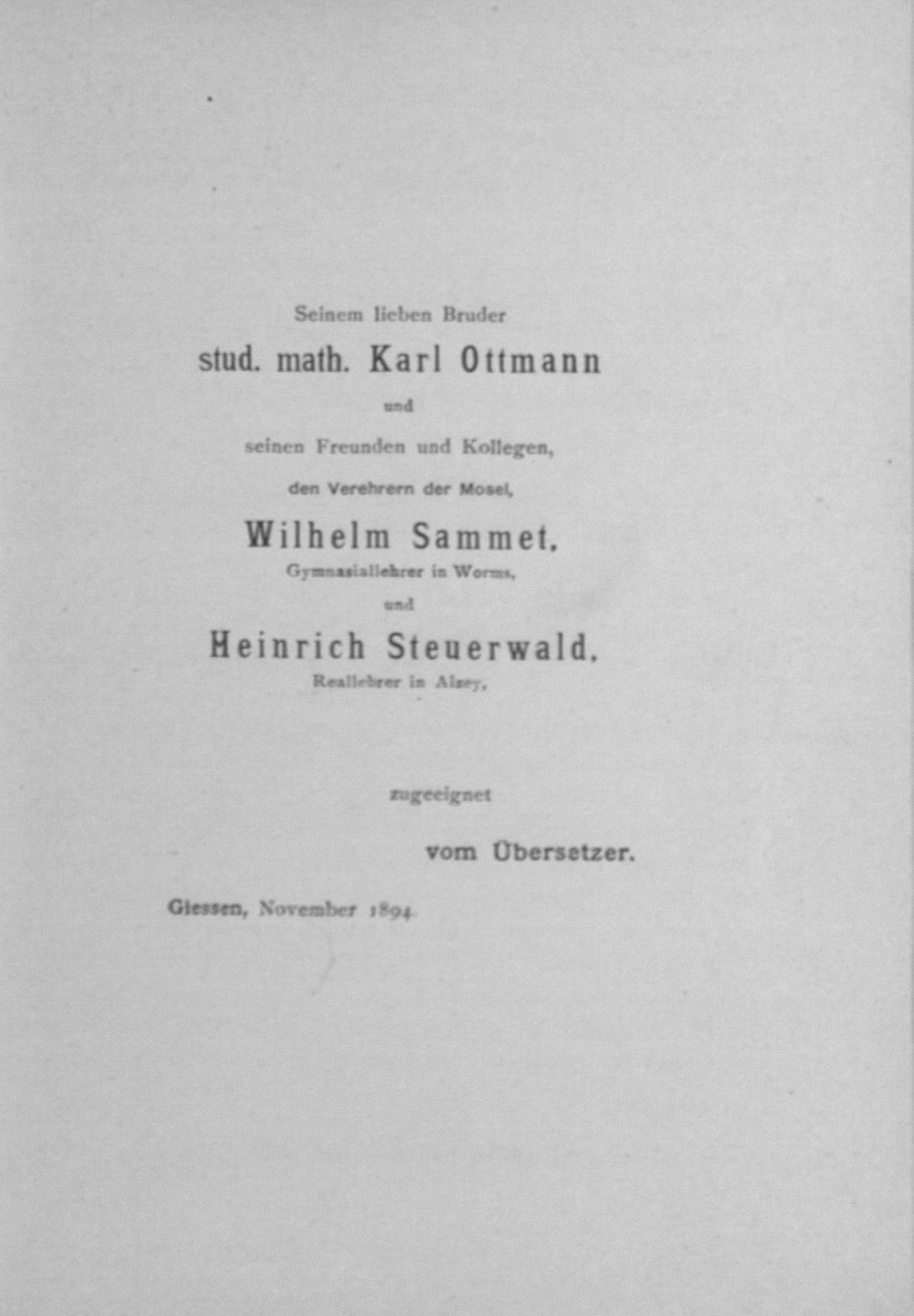 Die Mosella <<des Decimus Magnus Ausonius>> : mit beigegebenem Grundtext / übertr. von Rich. Eduard Ottmann