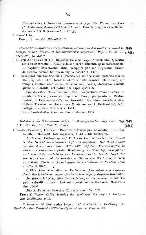 Die juristischen Handschriften der Stadtbibliothek zu Trier / von G. Kentenich