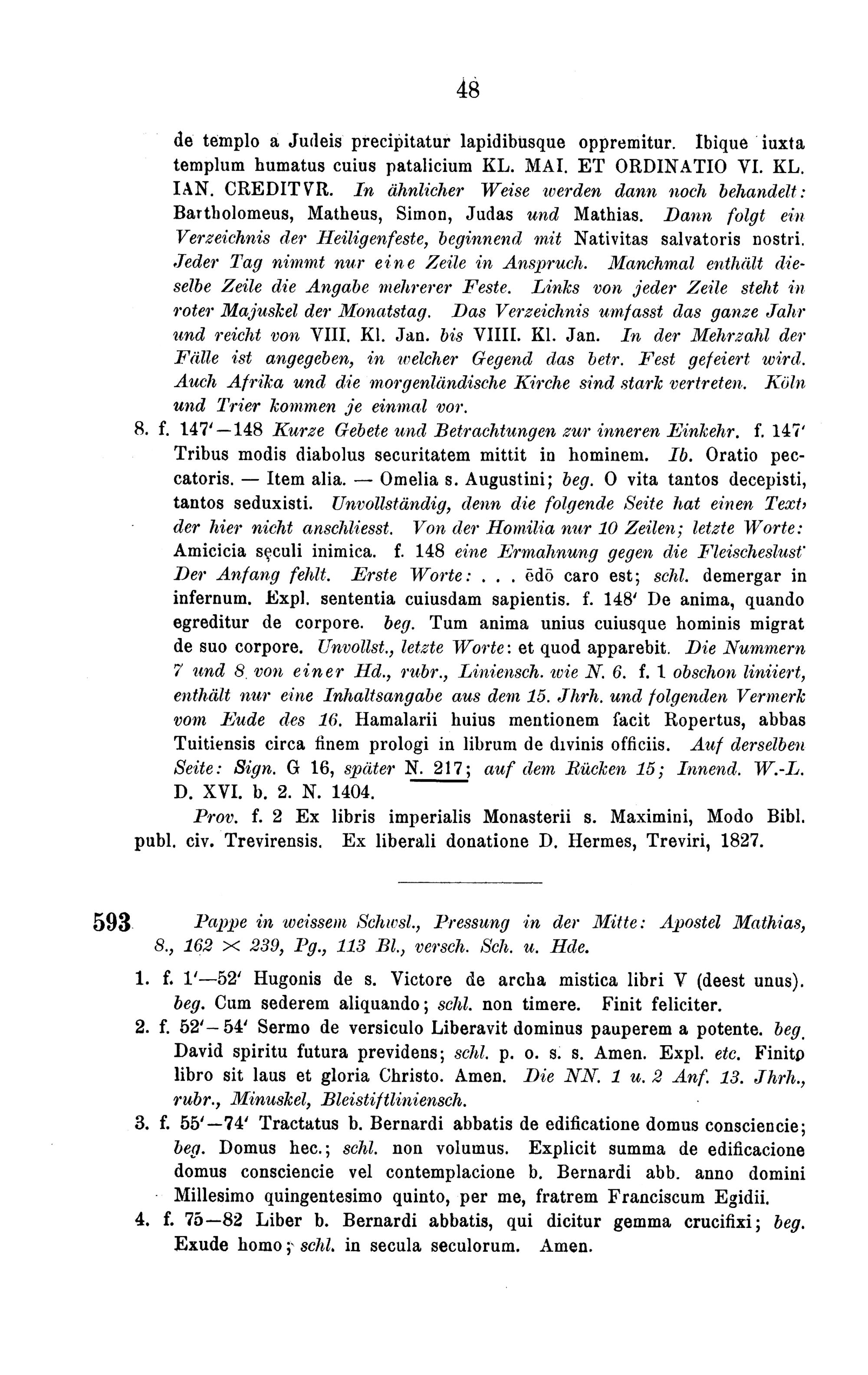 Die ascetischen Handschriften der Stadtbibliothek zu Trier