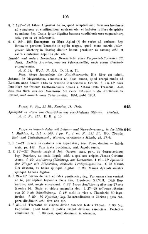 Die ascetischen Handschriften der Stadtbibliothek zu Trier