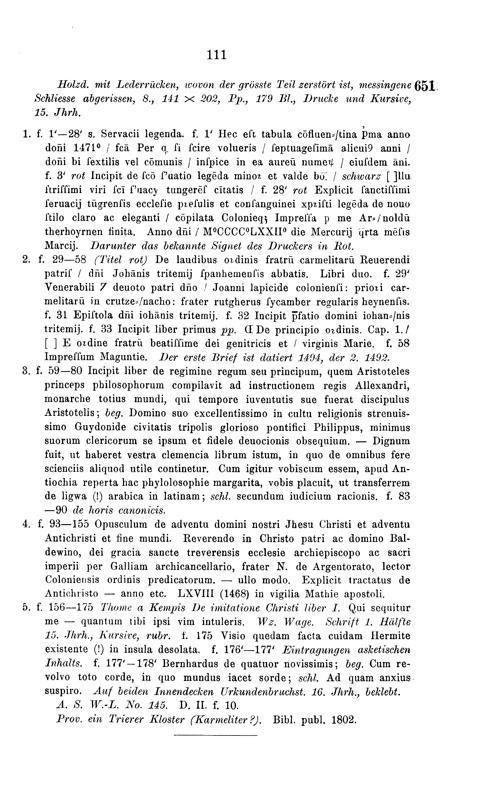 Die ascetischen Handschriften der Stadtbibliothek zu Trier
