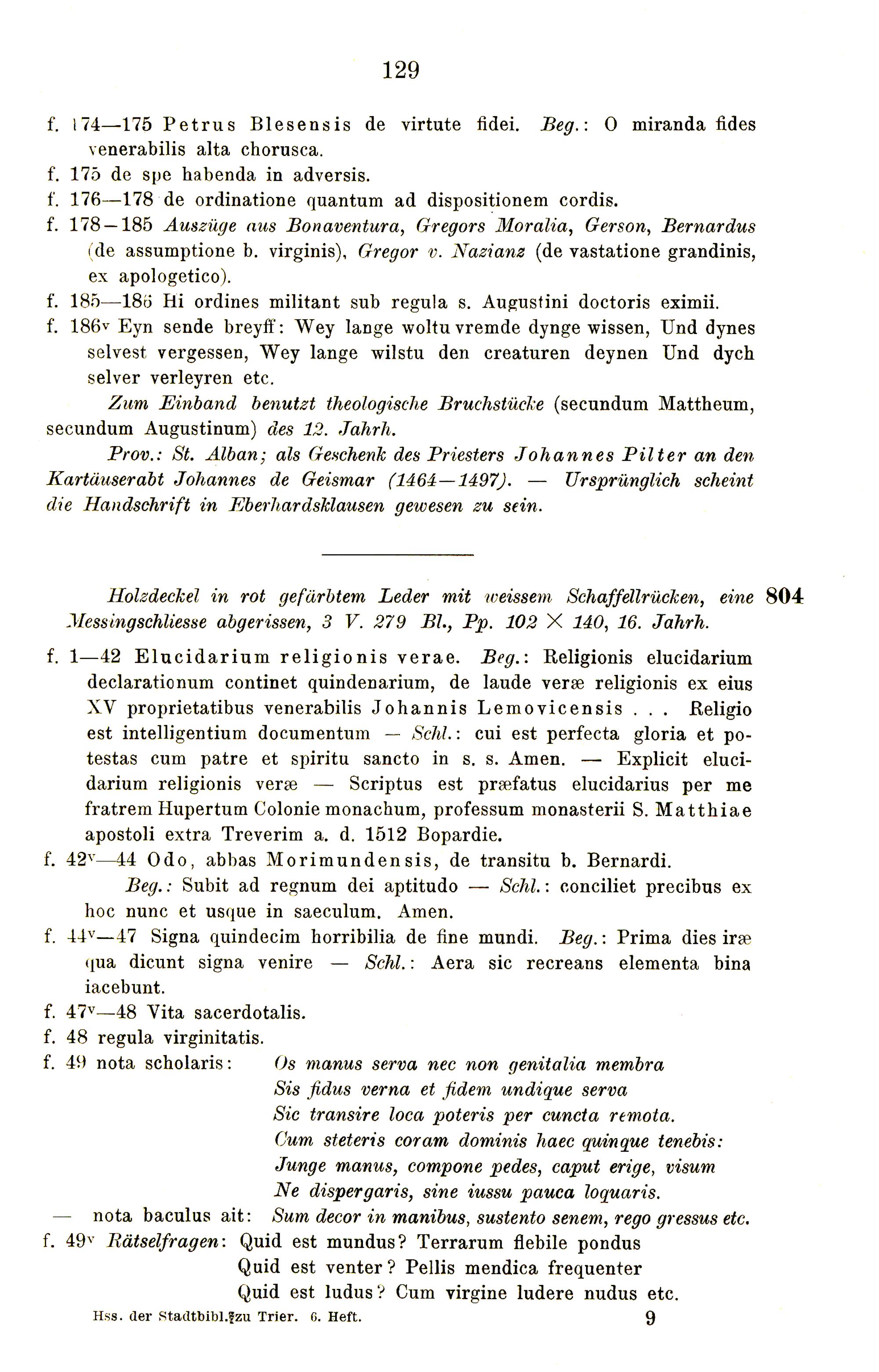 Die ascetischen Handschriften der Stadtbibliothek zu Trier