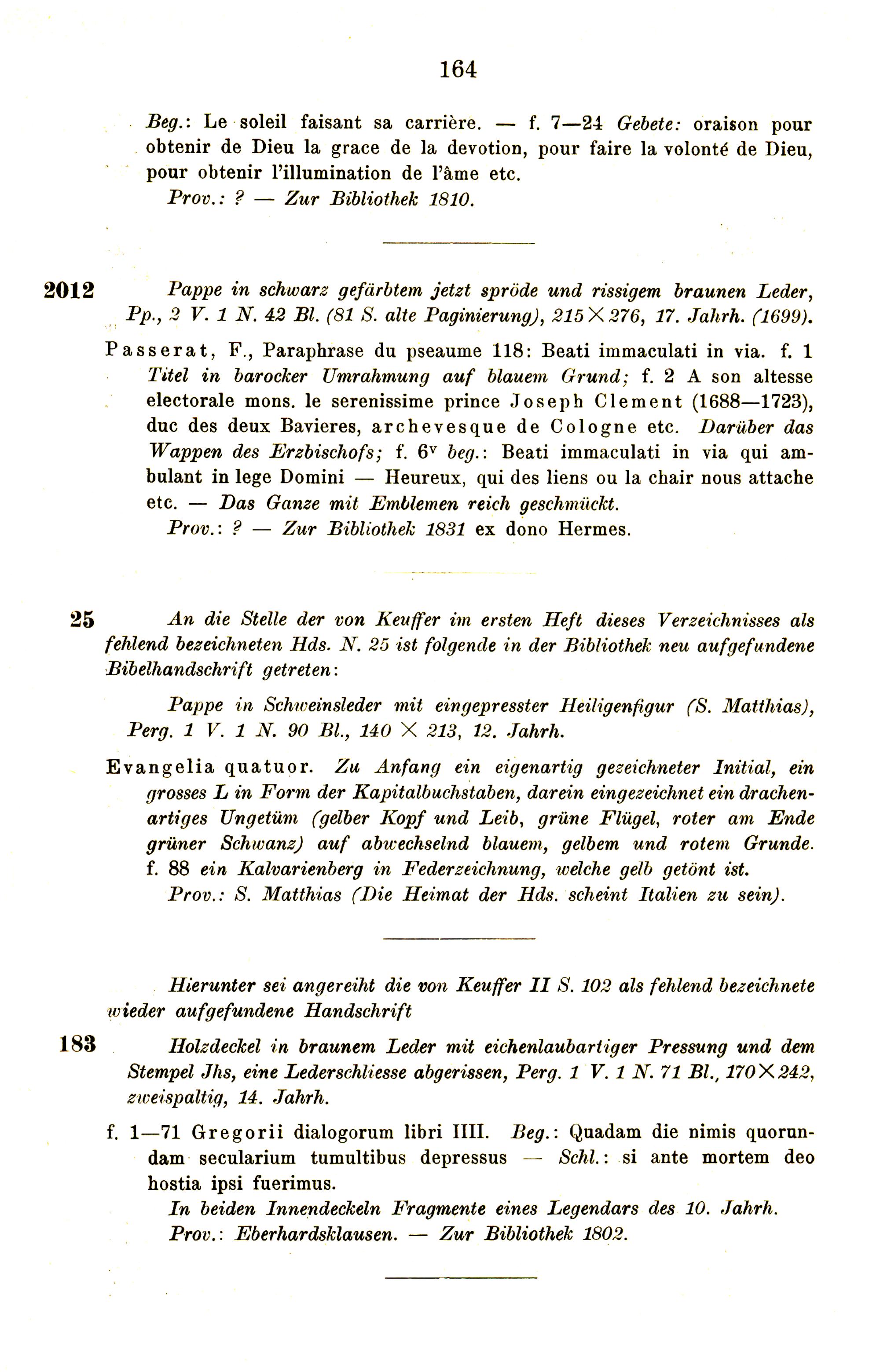 Die ascetischen Handschriften der Stadtbibliothek zu Trier