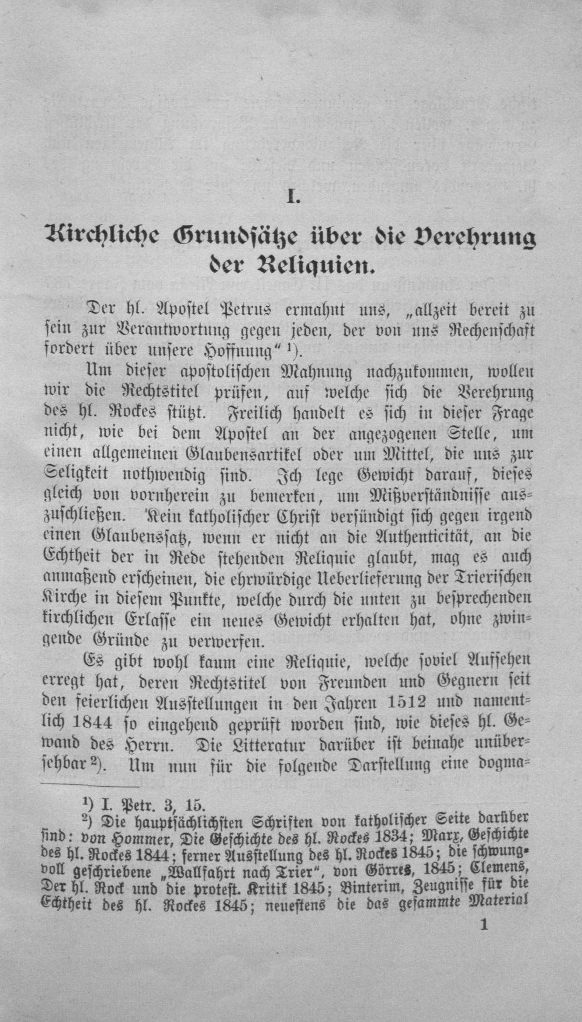 I. Kirchliche Grundsätze über die Verehrung der Reliquien