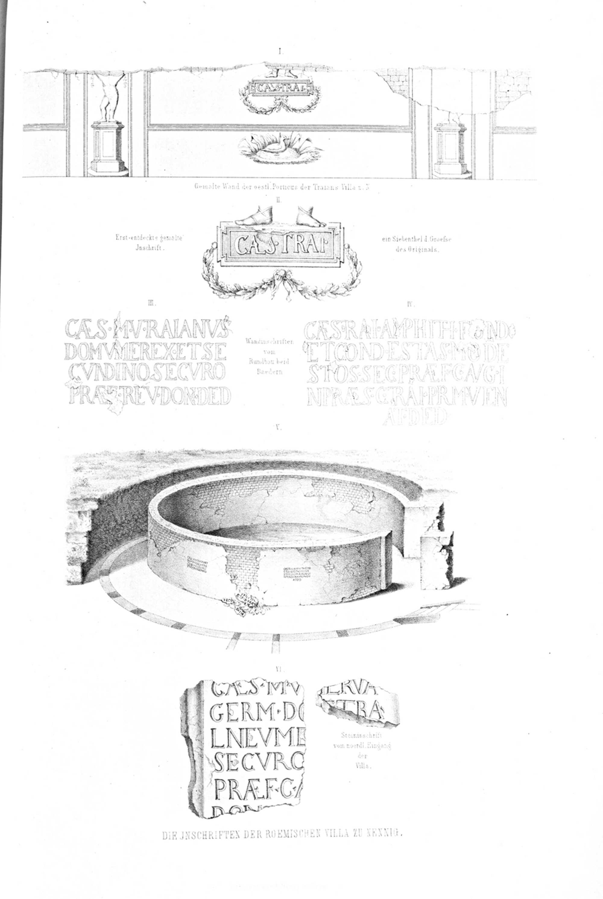 Die römische Villa zu Nennig : ihre Inschriften ; mit zwei Tafeln, Facsimile der Inschriften, und erläuternde Sculpturen vom Amphitheater und Forum der Col. Aug. Trev / erl. von Domcapitular von Wilmowsky