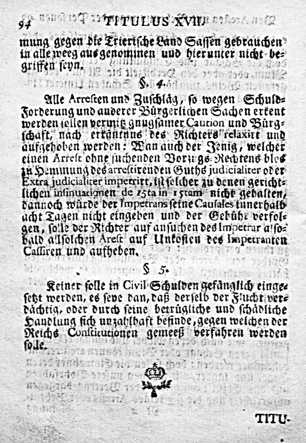 Erneuert- und vermehrtes Land-Recht des Erz-Stifts Trier : durch den Hochwürdigst-Durchlauchtigsten Herrn Herrn Carl Erzbischof Zu Trier, Des H. Römischen Reichs durch Gallien und des Königreichs Arelaten Erzcanzler und Churfürst, Bischof zu Osnabrück, Administrator zu Prüm, Herzog zu Lotharingen und Baar, des Ritterlichen Maltheser-Ordens in Castilien und Legion Groß Prior &c. Aufgericht im Jahr 1713