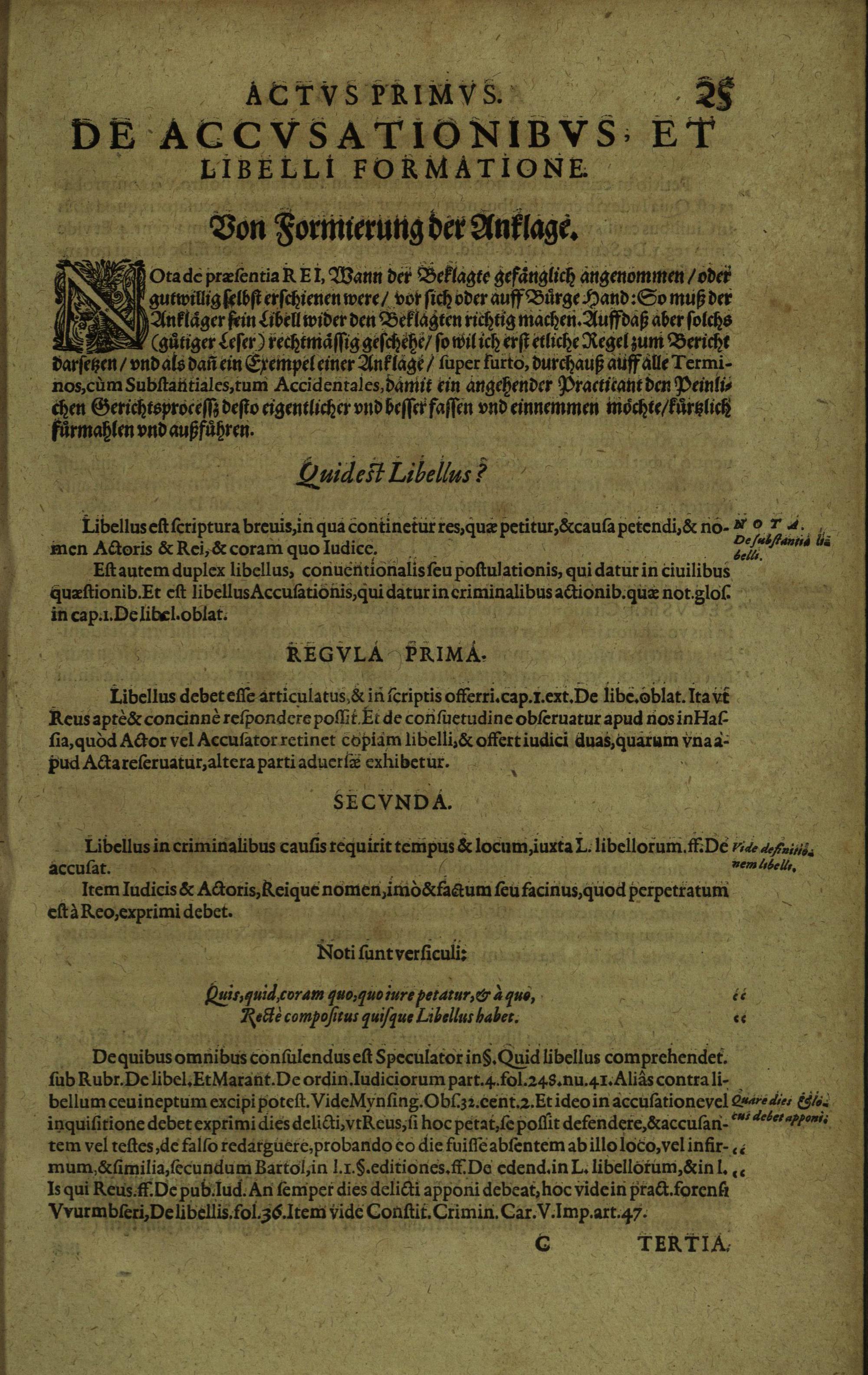 Peinlicher Proceß, das ist: gründtliche und rechte Underweysung, wie man in peinlichen Sachen heutigen Tages nach allgemeinen geistlichen und weltlichen Rechten, auch nach etlichen besonder verordneten Gewonheiten, Opinionen, Reichs- und Landtsordnungen, etliche mündtliche und schrifftliche Producta, und Recess halten/stellen/schreiben und procediren sol : Underschiedlich in VII. Termin oder Actus getheilt ; den Gerichtspersonen, jungen und angehenden Practicanten, auch einem jeden, der in peinlichen Sachen zuthun u. nicht weniger nötig als löblich und nützlich zu wissen / mit besondern angehengten Allegationen ... durch ... Abraham Sawrn ... beschrieben ...