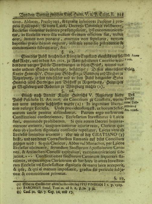 Siebenzehendes Capitel: Von dem Vertrag zwischen Kayser Heinrich V. und Pabst Calixt II.